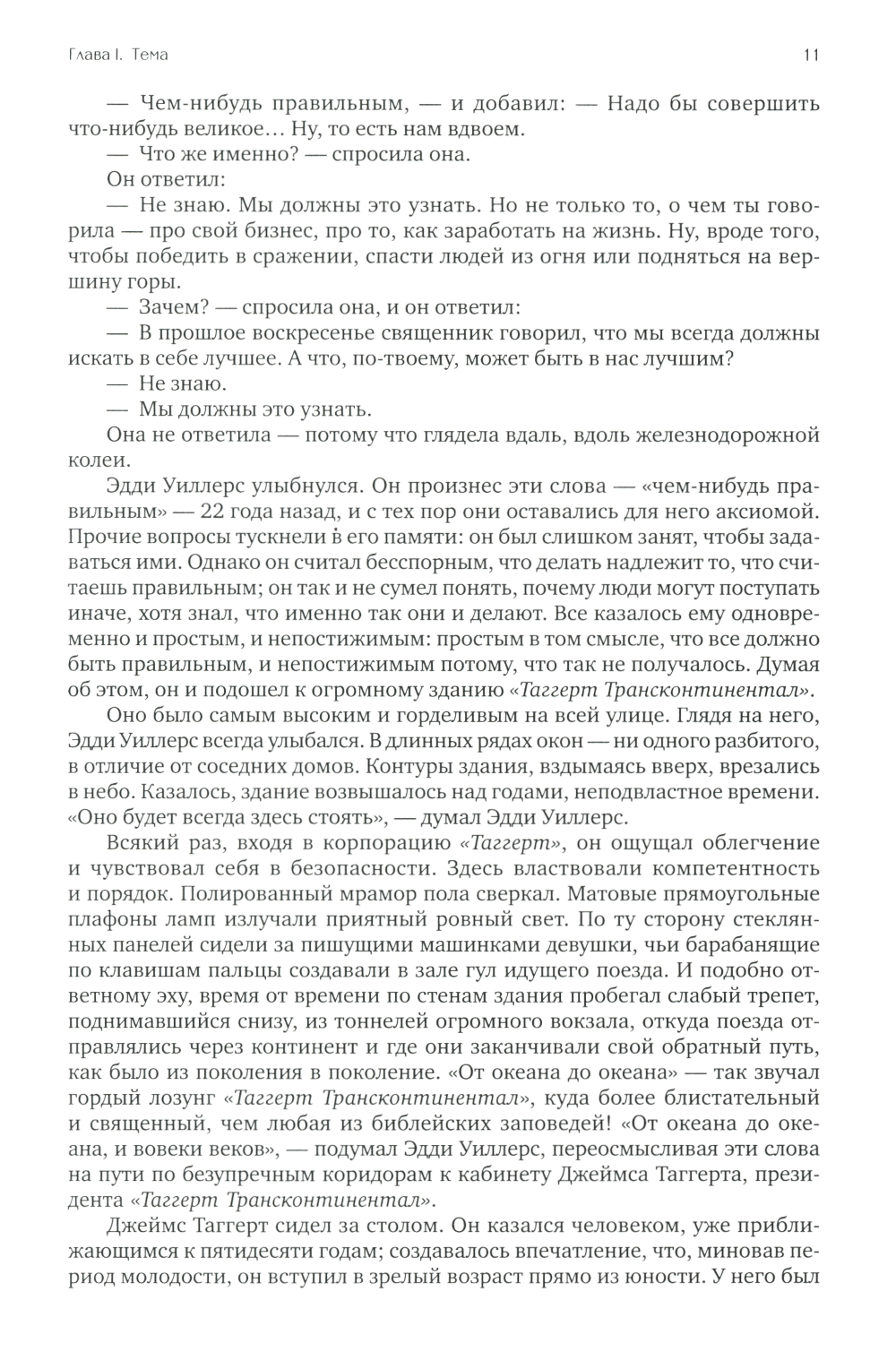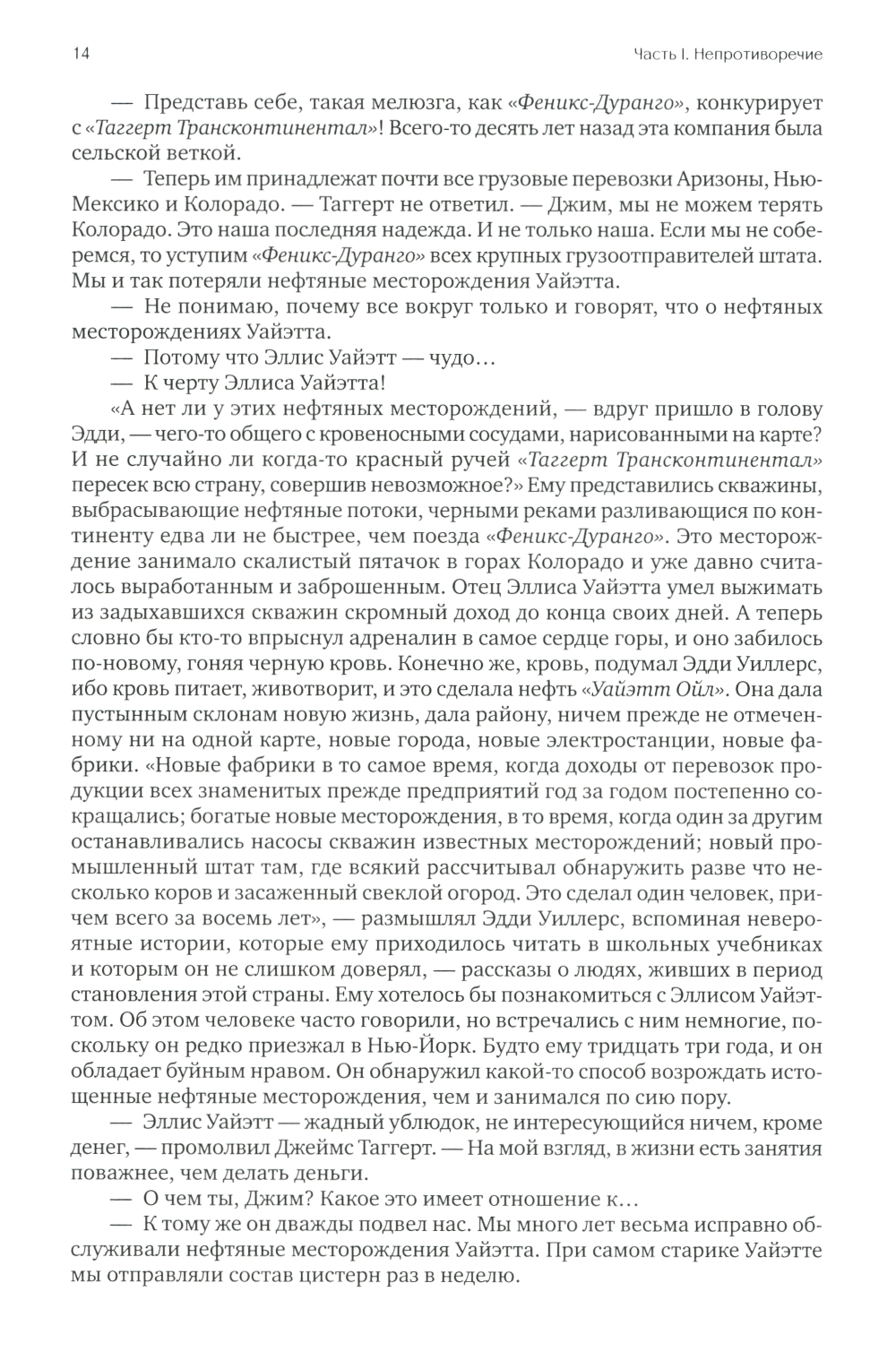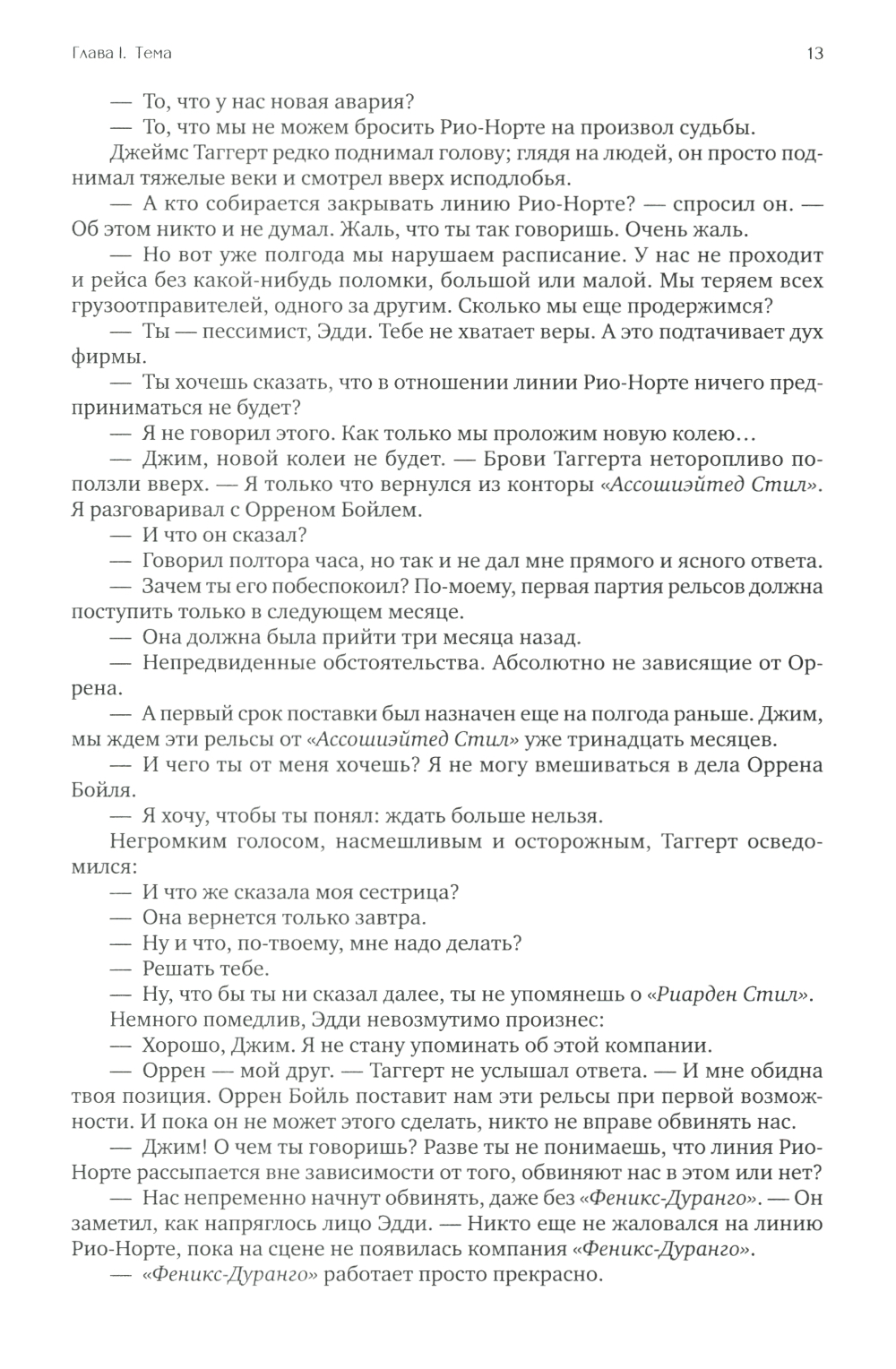 К власти в США приходят социалисты и правительство берет курс на «равные возможности», считая справедливым за счет талантливых и состоятельных сделать богатыми никчемных и бесталанных. Гонения на бизнес приводят к разрушению экономики, к тому же один за другим при загадочных обстоятельствах начинают исчезать талантливые люди и лучшие предприниматели. Главные герои романа стальной король Хэнк Риарден и вице-президент железнодорожной компании Дагни Таггерт тщетно пытаются противостоять трагическим событиям. Вместо всеобщего процветания общество погружается в апатию и хаос.| Издательство | Альпина Паблишер |