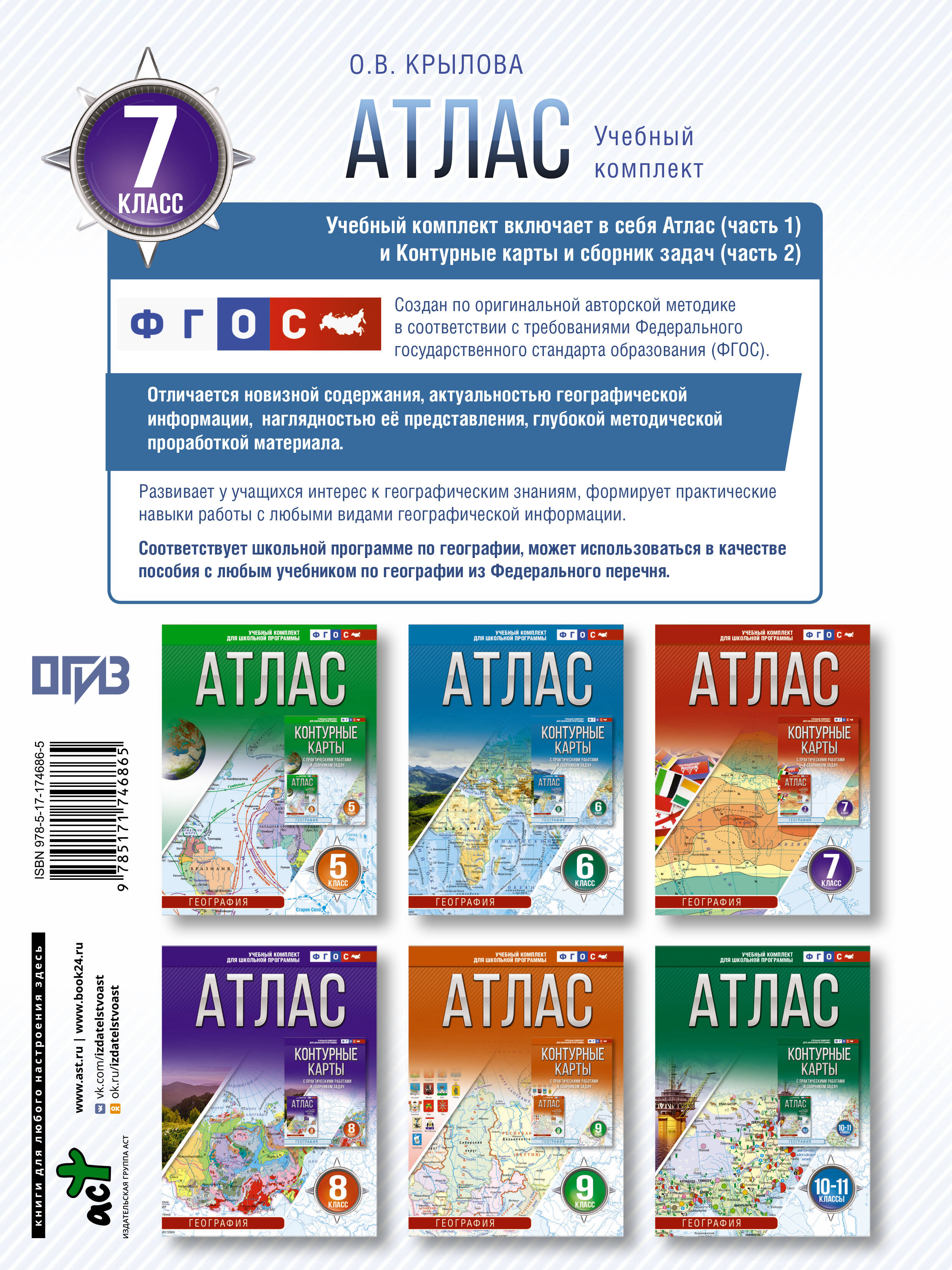 Атлас по географии для 7-го класса (автор - О.В. Крылова) разработан в соответствии с "Концепцией развития географического образования в Российской Федерации" и направлен на овладение учащимися универсальными учебными действиями, в том числе познавательными. Изучение материалов атласа существенно расширит объём познаний учащихся о природе и населении Земли, о географических особенностях материков и океанов. В данном атласе большое внимание уделяется проверке навыков работы с различными видами и источниками географической информации. Атласт подходит ко всем школьным программам и учебникам по географии, соответствует требованиям ФГОС и одобрен методистами. Россия в атласе представлена в новых границах: с Донецкой и Луганской народными республиками, Запорожской и Херсонской областями, Республикой Крым и Севастополем.| Издательство | Издательство "АСТ" |