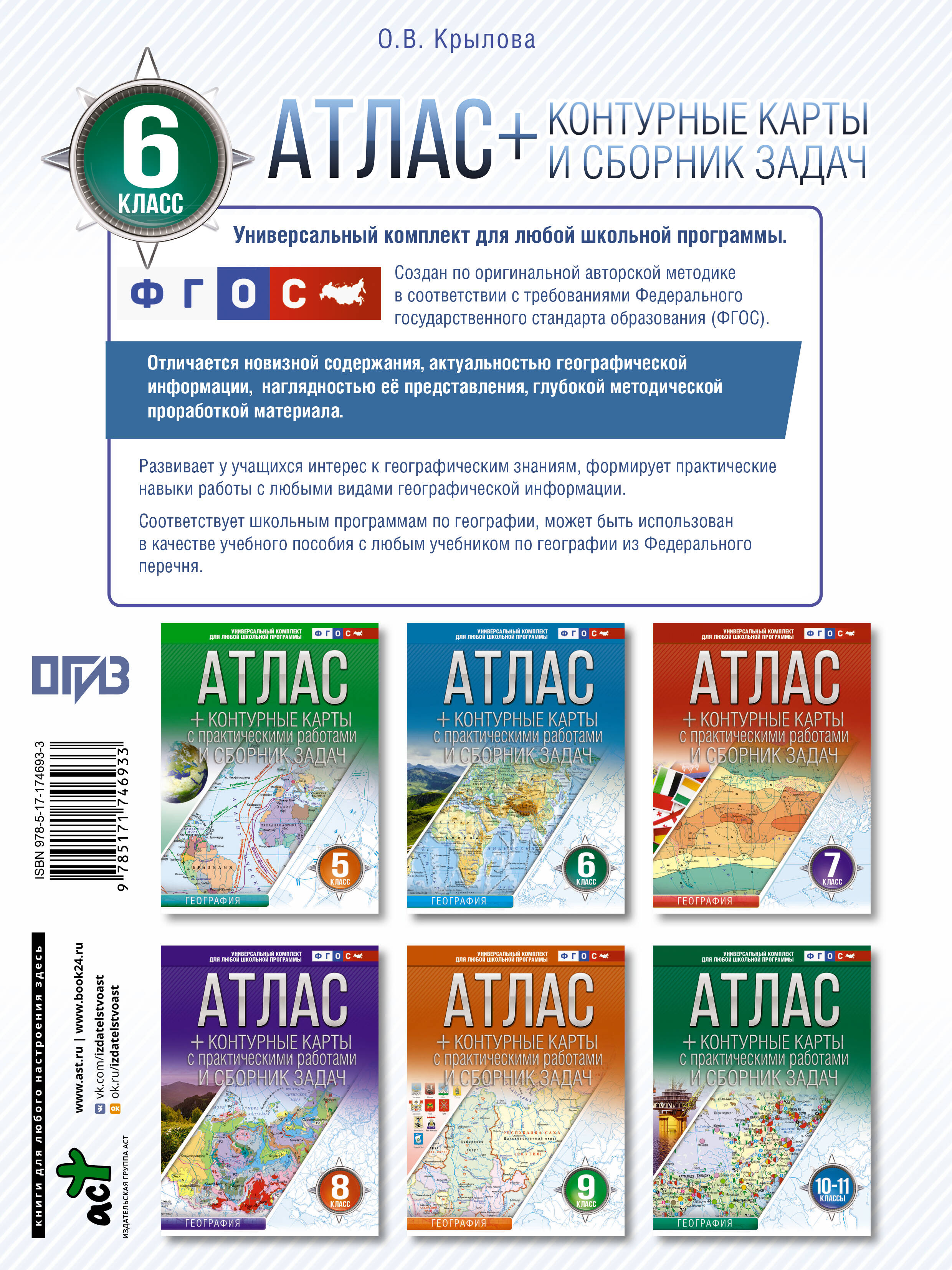 В состав универсального учебно-методического комплекта по географии для 6-го класса (автор - О.В. Крылова) входят атлас, контурные карты с практическими работами и сборник задач по работе с атласом. Главной задачей предлагаемого комплекта является развитие у учащихся интереса к географическим знаниям, формирование у них практических навыков работы с различными видами географической информации. Содержание материалов комплекта обеспечивает дальнейшее углубление представлений учащихся о планете Земля и её оболочках, о природе России, о работе с планом и картой. Оригинальные учебные задания способствуют закреплению пройденного материала, формированию у учащихся творческого начала, умения работать в группе. Предлагаемый учебно-методический комплект, созданный в соответствии с "Концепцией развития географического образования в Российской Федерации", отличается новизной содержания и при этом подходит ко всем школьным программам и учебникам по географии. Учебное пособие соответствует требованиям ФГОС и одобрено методистами. Россия в атласе представлена в новых границах: с Донецкой и Луганской народными республиками, Запорожской и Херсонской областями, Республикой Крым и Севастополем.| Издательство | Издательство "АСТ" |