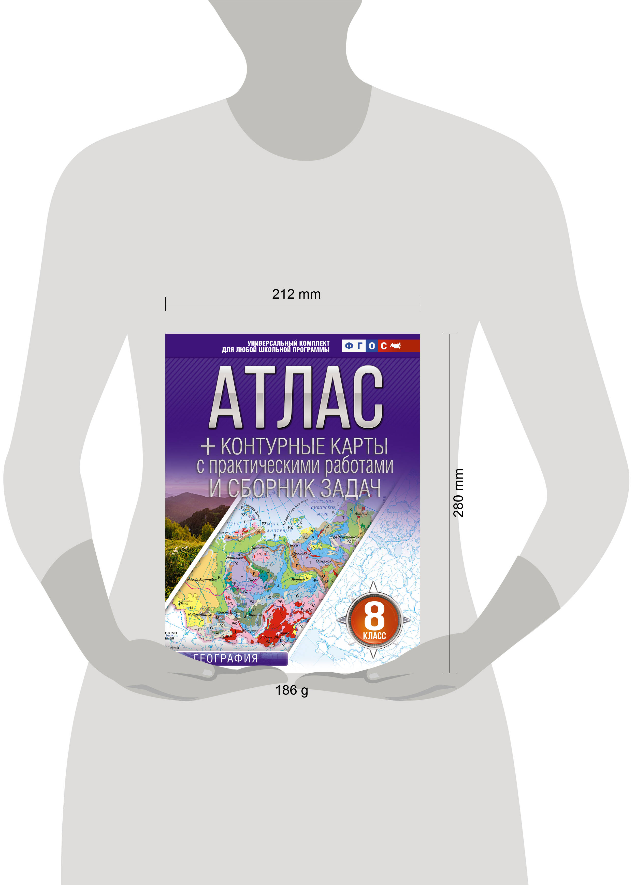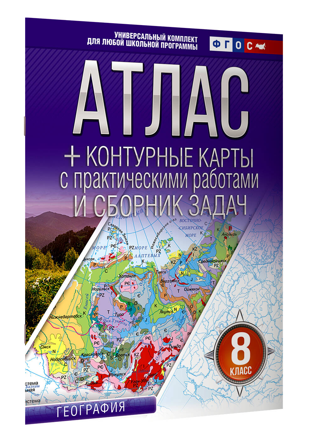 Универсальный учебно-методический комплект по географии для 8-го класса (автор - О.В. Крылова) включает в себя атлас, контурные карты с практическими работами и сборник задач по работе с атласом. Комплект разработан в соответствии с "Концепцией развития географического образования в Российской Федерации" и направлен на формирование знаний о географическом, природном, культурном, этнографическом и социально экономическом разнообразии России. Многочисленные и разнообразные задания, представленные в "Сборнике задач" и на контурных картах, способствуют формированию географической культуры обучающихся, расширяют их географические знания о родной стране и своей "малой Родине". Предложенные задания помогут учащимся овладеть универсальными учебными действиями в соответствии с требования ФГОС. Предлагаемый комплект подходит ко всем школьным программам и учебникам по географии, соответствует требованиям ФГОС и одобрен методистами. Россия атласе представлена в новых границах: с Донецкой и Луганской народными республиками, Запорожской и Херсонской областями, Республикой Крым и Севастополем.| Издательство | Издательство "АСТ" |
