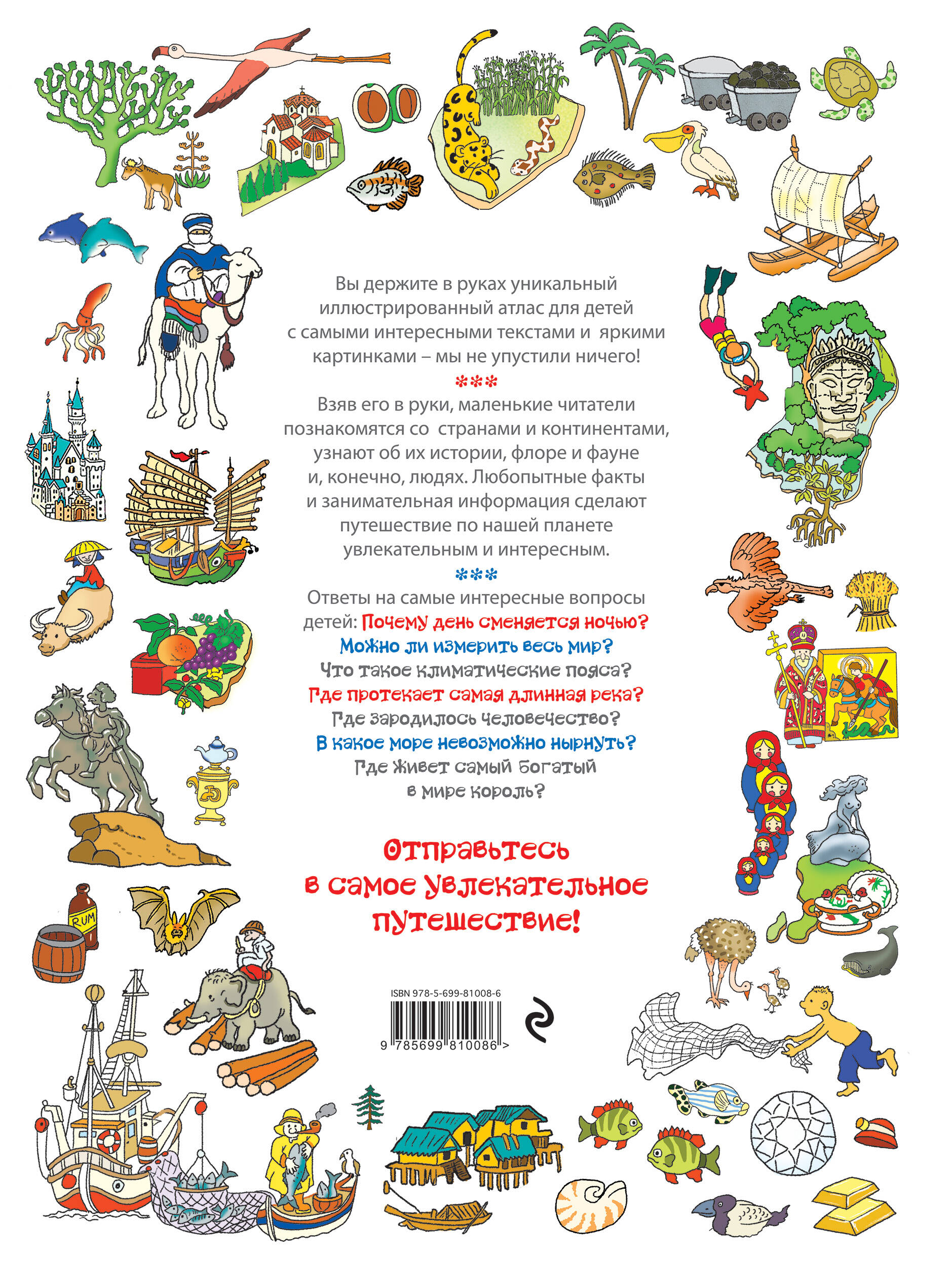 Яркий иллюстрированный атлас для детей познакомит с множеством интересных стран, поможет узнать больше о континентах, их истории, природе и местных жителях. Любопытные факты и занимательная информация сделают путешествие по нашей планете захватывающим и увлекательным. Ответы на самые интересные вопросы детей: • Почему день сменяется ночью? • Можно ли измерить весь мир? • Что такое климатические пояса? • Где протекает самая длинная река? • Где зародилось человечество? • В какое море невозможно нырнуть? • Где живет самый богатый в мире король? Основная информация обновлена и дополнена. Рекомендуем детям от 6 лет.| Издательство | ООО "Издательство "Эксмо" |