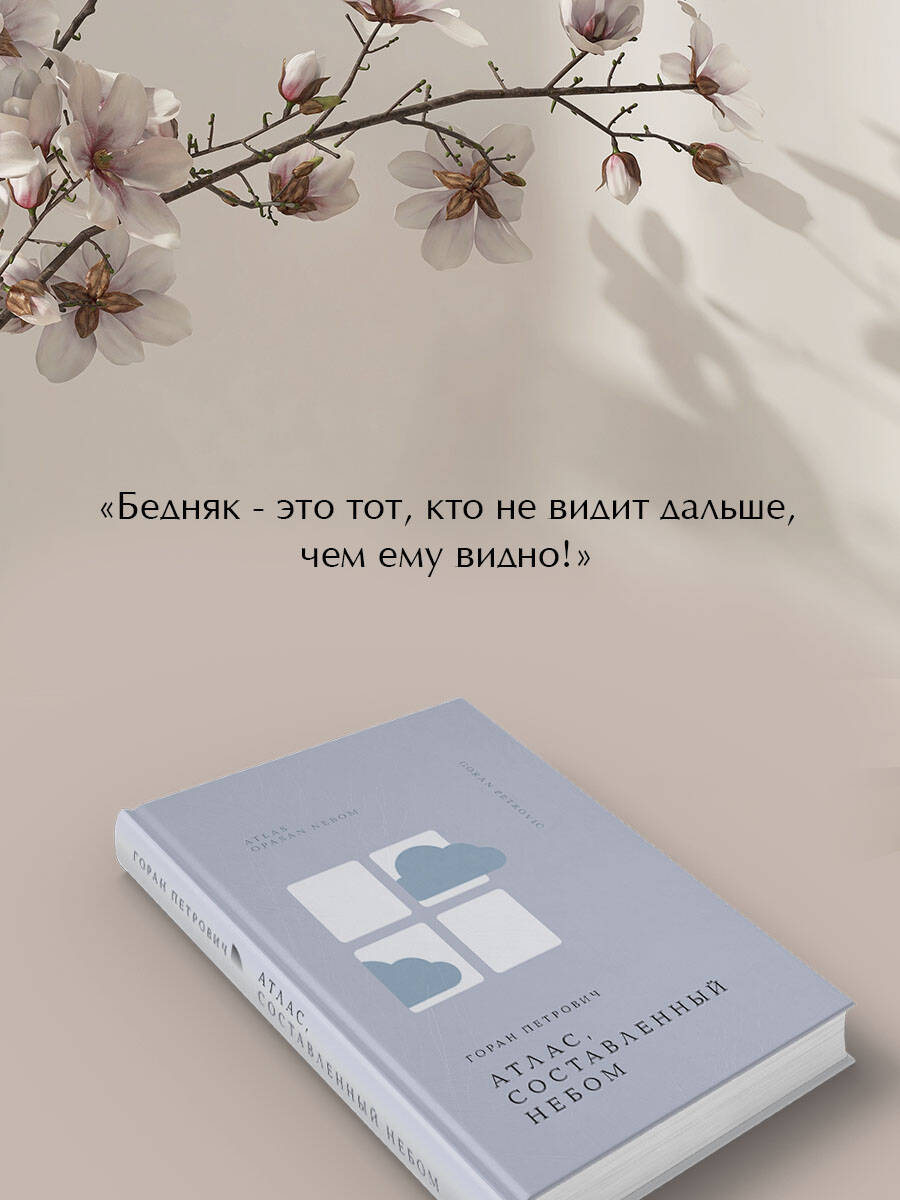 «Атлас, составленный небом» - первый роман Горана Петрович, написанный в духе магического реализма, выпущенный в 1993 году. В предместье одного сербского городка возвышается странный дом. В отличие от окружающих его строений, крытых черепицей, крышей ему служит бесконечность неба. Под столь прекрасной сенью обитают необычные постояльцы - они могут поймать лунный свет, стряхнуть с персикового дерева бриллианты или магией песни пустить созвездия в пляс. Каждый, кто отважился постучать в дверь сего дивного дома, столкнется с доселе неизведанной и прекрасной Вселенной… Самая добрая книга. Сборник чувств, мыслей, состояний. Атлас из метафор и недосказанности. Сначала кажется фантасмагорией, а потом понимаешь, что это просто такая реальность, и уже не можешь остановиться. Волшебный мир магического реализма удивляет и поглощает, и нет желания из него возвращаться. Книга-загадка, книга-клад. А прочитаешь ее, и мир станет ярче, и более человечным станешь сам. И оказывается, что можно оставаться самим собой, мечтать и быть счастливым, не оглядываясь не мнение других. Любитель сказок найдет в этой книге умиляющую и забавную историю о жизни необычных существ, полную самых разных персонажей из народного фольклора. В ней переплетение сербской и русской мифологии. Ценитель афористического языка обнаружит массу гениальных цитат, каждая из которых имеет полное право быть выгравированной золотыми буквами в анналах человеческой памяти. Знаток игры воображения увидит психоделические мотивы, расширяющие сознание. Необычная книга доставит множество удовольствий лирическим юмором и поэтической фантазией. Сербский магический реализм. Книга Г. Петровича близка к творчеству Павича, Борхеса, Маркеса, Кортасара, Эко, Гофмана... Тем, кто любит такой набор смысловых историй, весьма произвольных по сюжету, можно рекомендовать знакомство с этой книгой.| Издательство | ООО "Издательство "Эксмо" |