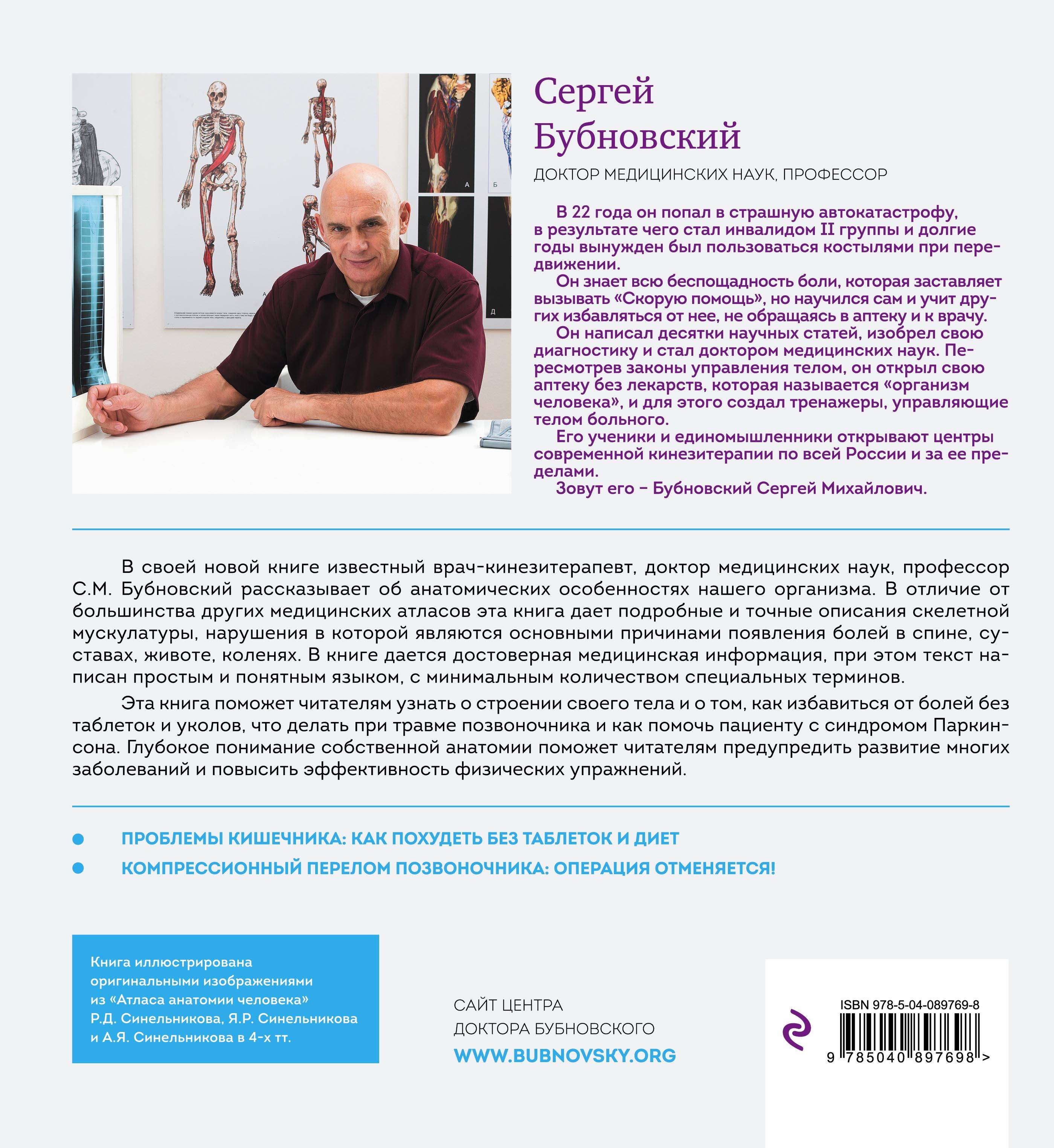 О чем «Атлас здоровья позвоночника» и суставов представляет собой большую полноцветную иллюстрированную книгу с подробным описанием костно-мышечной системы. В наше время, когда медицина стала всего лишь бизнесом, очень важно хорошо разбираться в анатомии своего тела, понимать, как оно устроено, знать, как возникают болезни и как можно их вылечить, не навредив себе. В этой книге очень наглядно показаны три отдела позвоночника в контексте с функциями мышц. Сергей Михайлович Бубновский подробно объясняет, каким образом возникают всевозможные грыжи (включая паховую), остеохондроз, остеопороз; что означает на самом деле диагноз «дегенеративно-дистрофические изменения позвоночника». Автор доказывает, что в первую очередь причиной наших недугов, с которыми мы живем десятилетия, является наше незнание анатомии. Мы слепо отдаемся в руки малознакомых людей, именующих себя врачами, бездумно глотаем таблетки и не можем понять, почему мы никак не можем выздороветь, почему не уходит боль. Может, пора взять ситуацию в свои руки? Жанр Оздоровительная литература. Для кого Книга предназначена тем, кому не безразлично свое здоровье. Почему стоит купить: - Книга от известного профессора доктора медицинских наук, автора серии книг, посвященных собственной уникальной методике оздоровления позвоночника и суставов. - Суммарный тираж книг Бубновского превысил 2,5 миллиона экз. - Эта книга дает подробные и точные описания скелетной мускулатуры, нарушения в которой являются основными причинами появления болей в спине, суставах, животе, коленях. - Новая книга доктора Бубновского представляет собой большой полноцветный иллюстрированный атлас костно-мышечной системы. - Текст книги сопровождается цветными иллюстрациями прекрасного качества, благодаря которым создается полное представление о том, как функционирует наш организм. Цитата из книги «Можно говорить о том, что в отличие от занятий в тренажерном зале отдых доставляет удовольствие и не вынуждает напрягаться, но рано или поздно от удовольствий такого «отдыха» у человека неизменно появится лишний вес, одышка и страх за свою жизнь - в отличие от занятий в тренажерном зале, после которых появляется самоуважение и уверенность в завтрашнем дне».| Издательство | ООО "Издательство "Эксмо" |