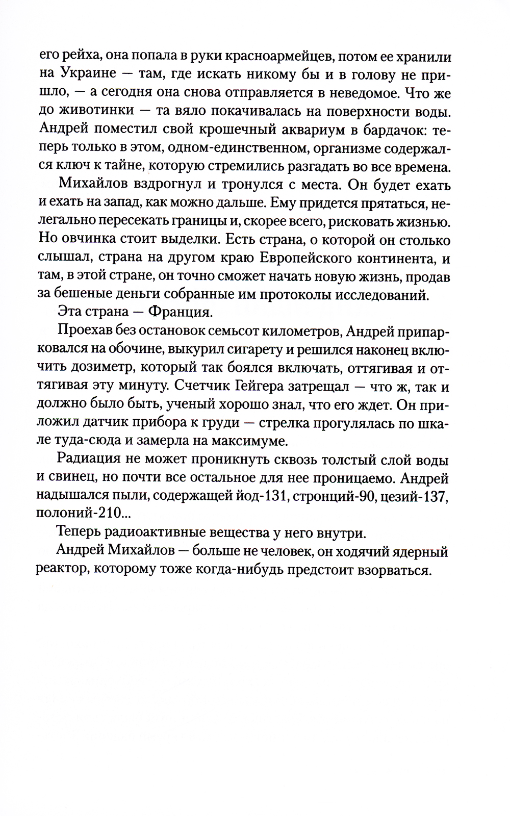 Тело парижского журналиста найдено в холодильнике на кухне его дома. Работавшая вместе с ним журналистка исчезла, зато найден совершенно истощенный мальчик с запиской от нее и со странной татуировкой. Возникают старые дела, связанные с утопленниками. Все эти странные случаи объединяет одно: попытка неких ученых с помощью запредельно низких температур бросить вызов смерти. Комиссар Шарко и Люси Эннебель включаются в расследование этого сложного дела, то и дело перемещаясь из Парижа в Гренобль, из психиатрической клиники в затерянный монастырь или в секретный научный центр, расположенный в Лос-Аламосе. В конце концов они понимают, что все следы ведут… в мертвый украинский город рядом с застывшим атомным реактором.| Издательство | Азбука |