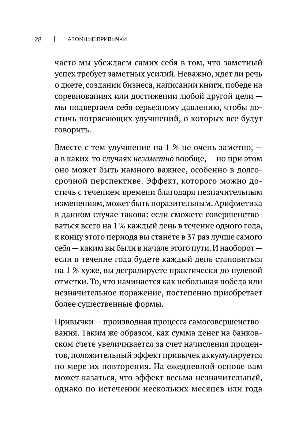 Может ли одна монетка сделать человека богатым? Конечно, нет, скажете вы. Но если добавить еще одну? И еще? И еще? В какой-то момент количество перейдет в качество. А теперь представьте, что одно крошечное изменение кардинально меняет всю жизнь. Звучит фантастически! Но, как и в случае с монетками, срабатывает эффект сложного процента. И вот уже маленькое, но регулярное действие привело к большим результатам. Атомные привычки - маленькие изменения, в которых скрыта огромную мощь! Вы давно пытаетесь измениться, но не получается. Не корите себя! Виноваты не вы, а система. Джеймс Клир развенчивает мифы о привычках, мотивации и силе воли. Опираясь на научные данные, результаты исследований, личный опыт и опыт успешных людей, он просто и понятно объясняет, как сделать хорошие привычки неизбежными, а вредные - невозможными. Без вариантов!| Издательство | Питер |