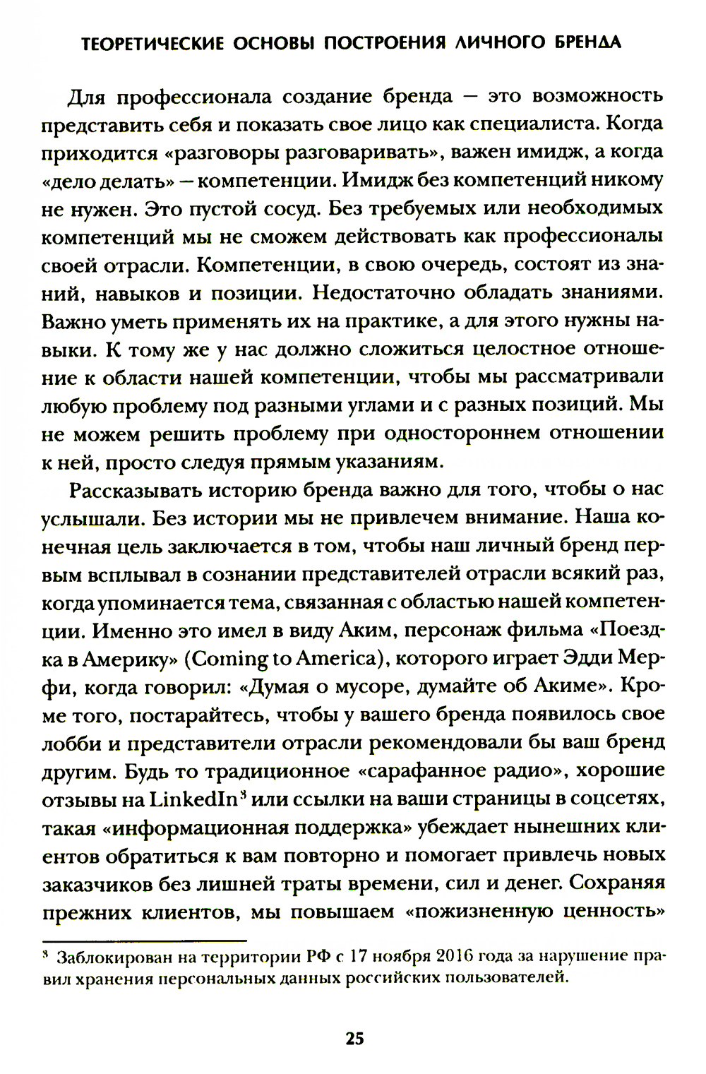 В этой книге аккумулирован весь комплекс знаний о выстраивании профессионального имиджа и о том, как, когда и почему необходимо заняться ребрендингом. Ясир Маттар ведет живой диалог с читателем, давая ему пошаговую инструкцию создания и модификации личного бренда в эпоху быстрых трансформаций - от первых опытов до создания портфолио. Он акцентирует внимание на идее необходимости непрерывного образования, проникновения в смежные области, приобретения компетенций и навыков и их развития на практике. В изложении автора персональный бренд предстает как гармоничный образ, в котором название, слоган, риторика, визуальный ряд не конфликтуют друг с другом. Значительное место уделяется методу сторителлинга и инструкциям, «как надо» и «как не надо» излагать факты. С учетом двенадцати архетипов личностей по Юнгу и семи архетипических сюжетов даются советы, как сделать свою историю легкой, запоминающейся и увлекательной. Эта информирующая, обучающая, вдохновляющая и мотивирующая книга предназначена для начинающих и опытных маркетологов, для специалистов разных областей и для самого широкого круга читателей, которые ищут свой образ и стремятся быть в тренде.| Издательство | Олимп-Бизнес |