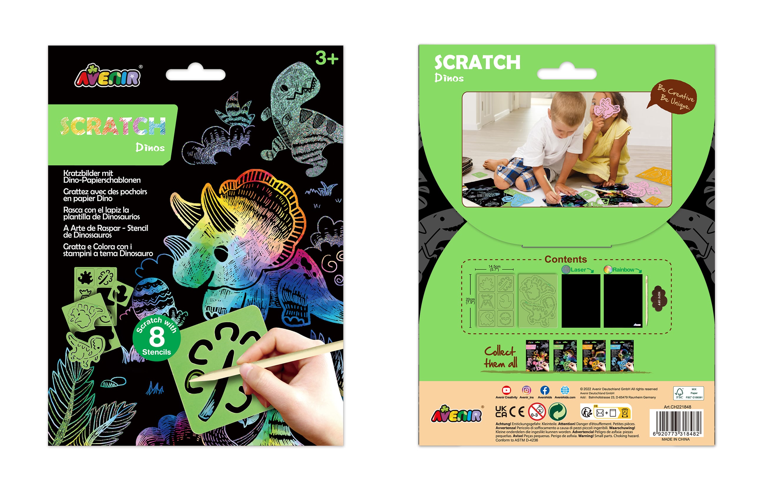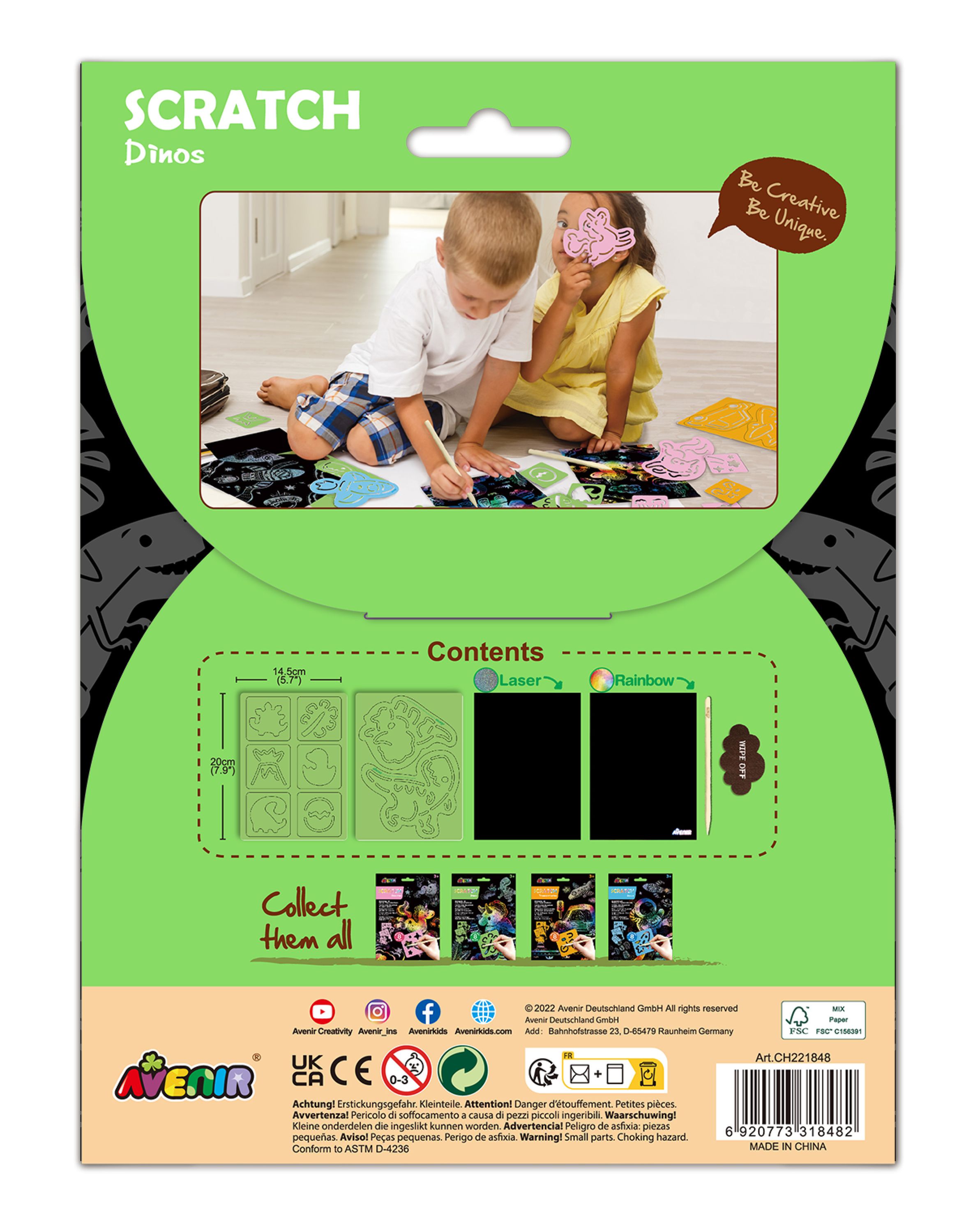 Удивительные яркие наборы скретч-арта от Avenir обязательно порадуют малышей. Поцарапайте специальную черную бумагу, чтобы создать забавные рисунки. Avenir Scratch - это больше, чем просто царапины. Эти наборы дают детям возможность заниматься творчеством и развивать разнообразные навыки - такие, как мелкая моторика, воображение, цветовосприятие и т.д. Подходит для возраста 3+