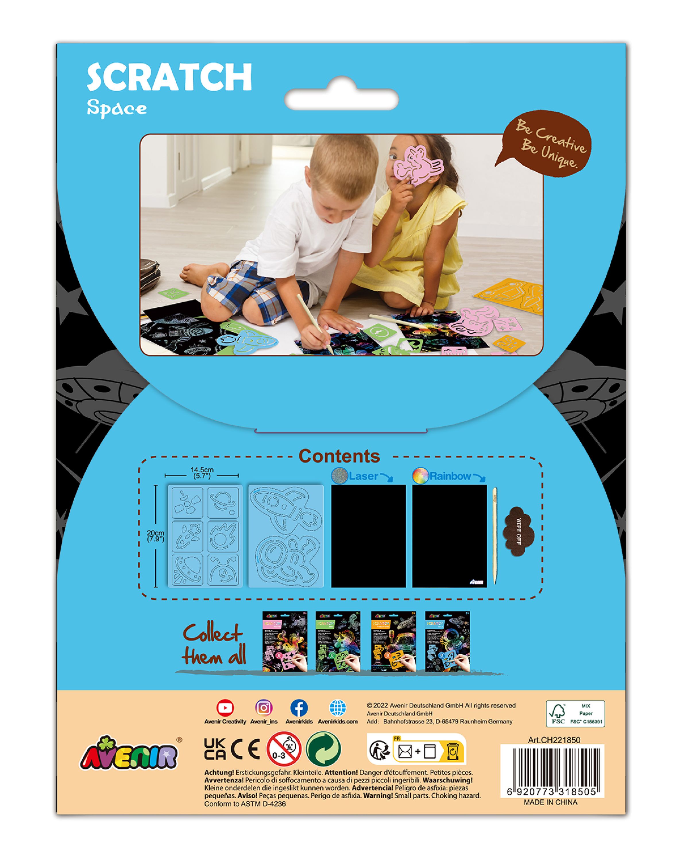 Удивительные яркие наборы скретч-арта от Avenir обязательно порадуют малышей. Поцарапайте специальную черную бумагу, чтобы создать забавные рисунки. Avenir Scratch - это больше, чем просто царапины. Эти наборы дают детям возможность заниматься творчеством и развивать разнообразные навыки - такие, как мелкая моторика, воображение, цветовосприятие и т.д. Подходит для возраста 3+