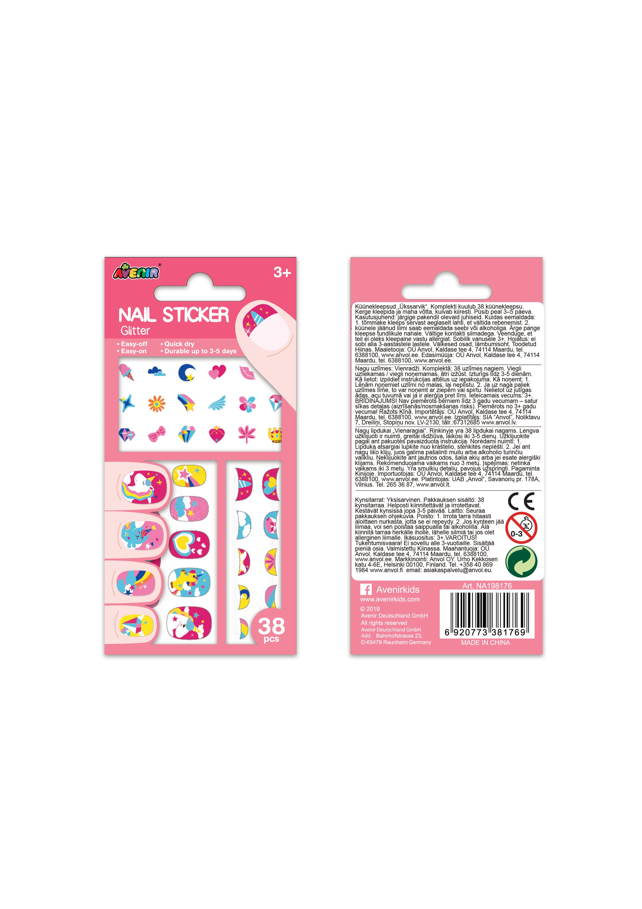 Набор декоративных наклеек на ногти "Единороги" от бренда Avenir создан для преображения маникюра юной леди из обычного в оригинальный. Он станет отличным подарком для каждой малышки! В наборе 38 блестящих стикеров на ногти с изображениями сказочных единорогов разных форм и размеров. Тонкие и аккуратные, эти наклейки легки в использовании, но также они очень стойкие. Легко наносятся, легко снимаются, держатся от 3 до 5 дней. Яркие цвета, интересные детали - это все, что нужно, чтобы ноготки дарили девочкам хорошее настроение каждый день! Возраст: от 3 лет.