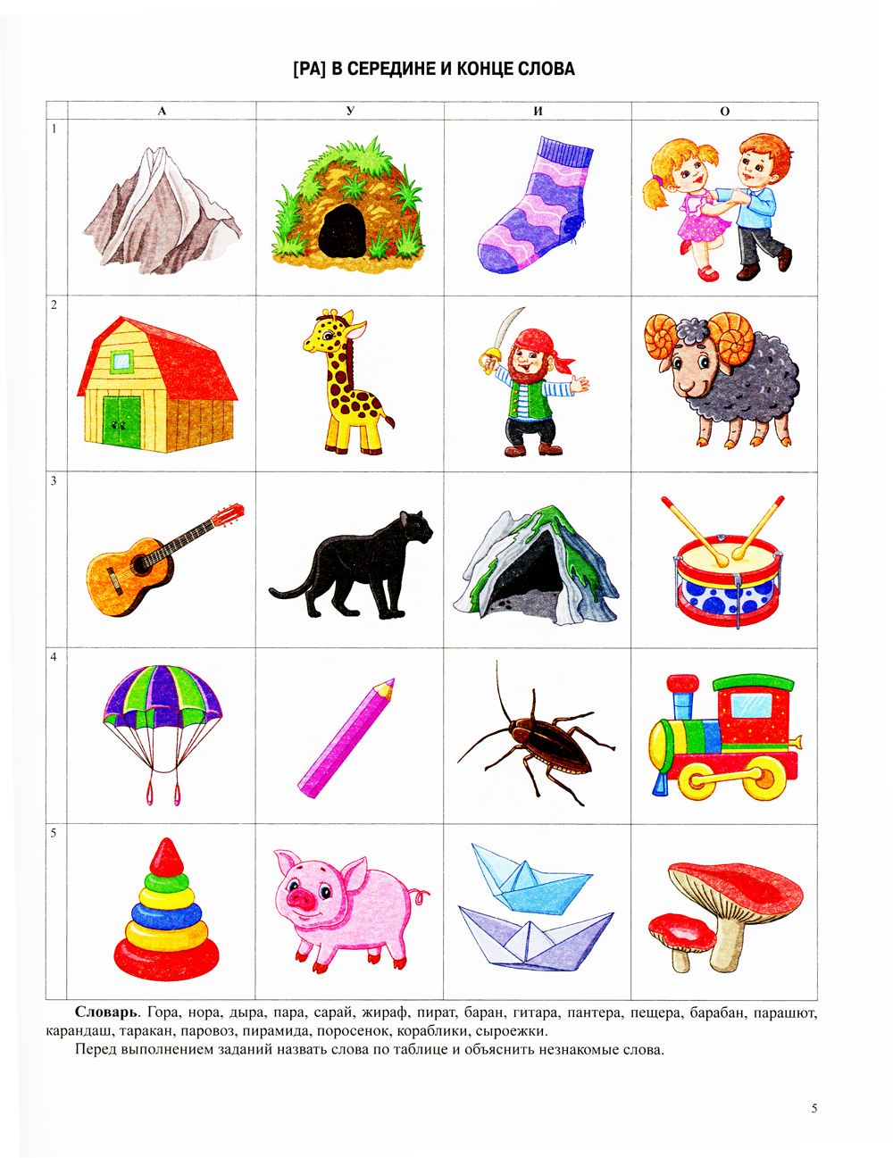 В данном пособии представлены звукотаблицы с картинным материалом для автоматизации звуков [р], [р'] у детей от 5 до 7 лет. К каждой таблице подобраны задания, способствующие расширению лексического запаса, усвоению грамматического строя родного языка, морфемного состава словоформ, совершенствованию навыков фонематического восприятия. Звукотаблицы могут быть использованы и для уточнения слоговой структуры слова. Кроме того, в процессе работы по звукотаблице формируются пространственные понятия, развиваются графические навыки, а также такие психические процессы, как зрительное внимание и память. Предложенный материал может быть использован логопедами, дефектологами и родителями детей-дошкольников.| Издательство | Детство-Пресс |