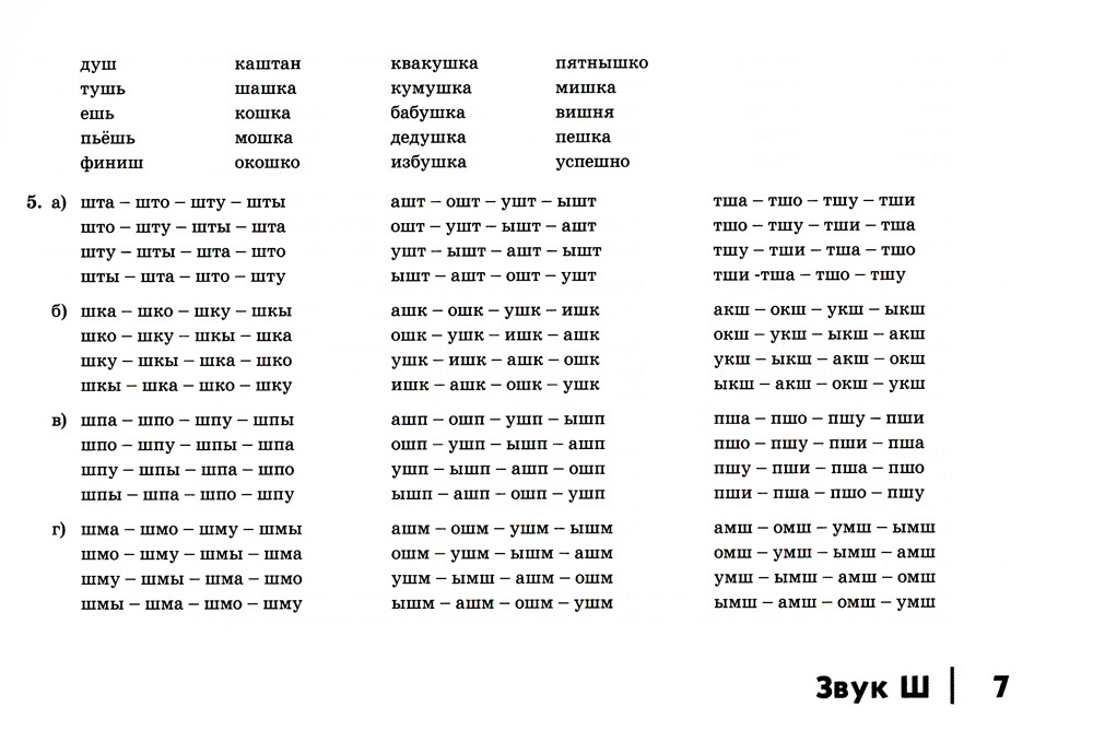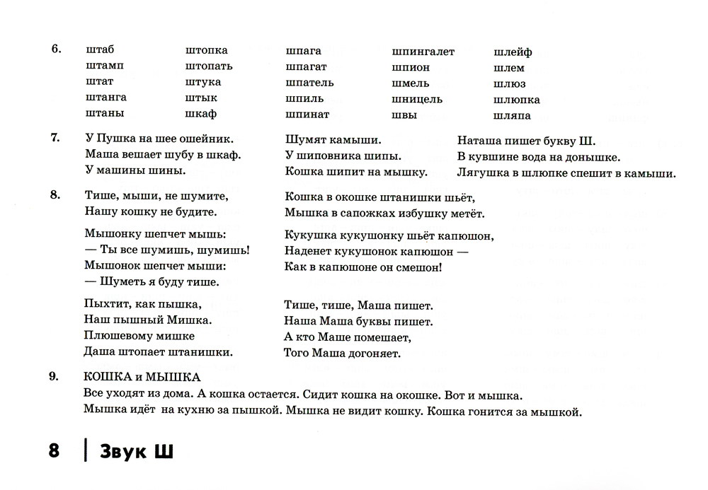 Пособие содержит лексический и иллюстративный материал, предназначенный для автоматизации шипящих звуков Ш, Ж, Ч, Щ. Материал пособия может также использоваться родителями для закрепления в речи уже поставленных звуков. Лексический материал отобран и расположен с максимальным учетом дидактических и методических требований к логопедической работе с детьми и в соответствии с законами русской фонетики. Иллюстративный материал, соответствующий современным представлениям об окружающем мире, способствует поддержанию интереса детей к занятиям и увеличению объема запоминания. Пособие адресовано логопедам дошкольных образовательных учреждений, школ и детских поликлиник, гувернерам и родителям детей дошкольного и младшего школьного возраста.