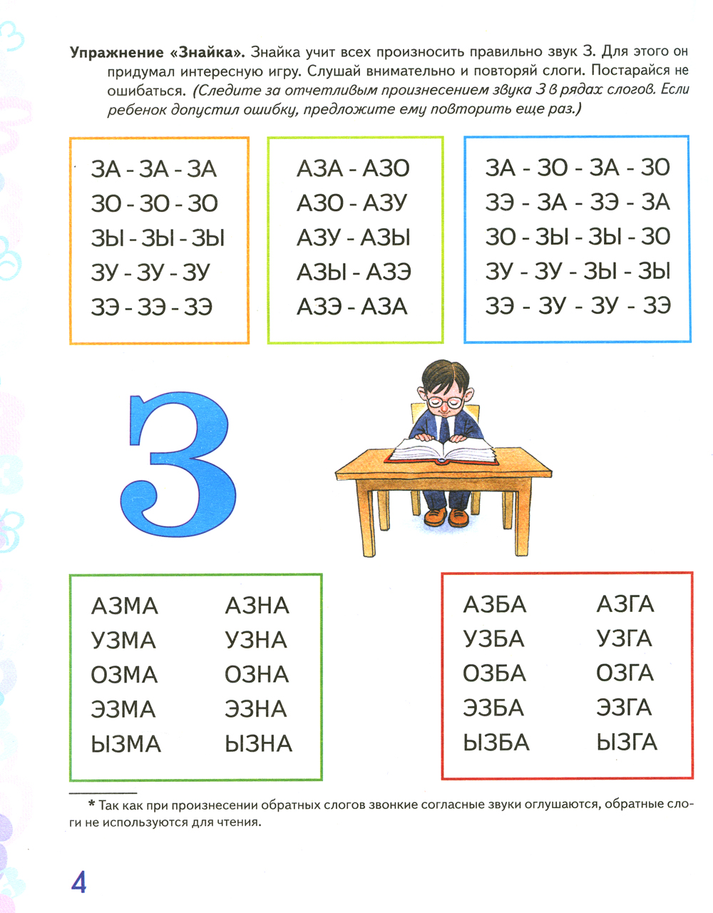 В пособии предлагается система упражнений по автоматизации звука З у дошкольников 4-7 лет, которая превращает однообразную и монотонную работу по закреплению произношения поставленного логопедом звука в интересную игру. Одновременно с автоматизацией звука у ребенка совершенствуется навык чтения, развивается мелкая моторика, творческое воображение. Работа по пособию способствует более быстрой автоматизации звука в спонтанной речи, развитию фонематического слуха, совершенствованию слоговой структуры слова, коррекции лексико-грамматического строя речи, закреплению знаний об автоматизируемом звуке и соответствующей букве, формированию навыка звукобуквенного анализа слогов и слов. Автоматизация проводится по традиционной в логопедии схеме. Эффективность коррекционной работы обеспечивается использованием ряда вспомогательных приемов (работа с объемными и плоскими игрушками, счетными палочками, создание на занятии игровых ситуаций). Пособие предназначено для проведения индивидуальной работы с ребенком и адресовано логопедам, воспитателям логопедических групп и родителям детей с нарушениями речи.