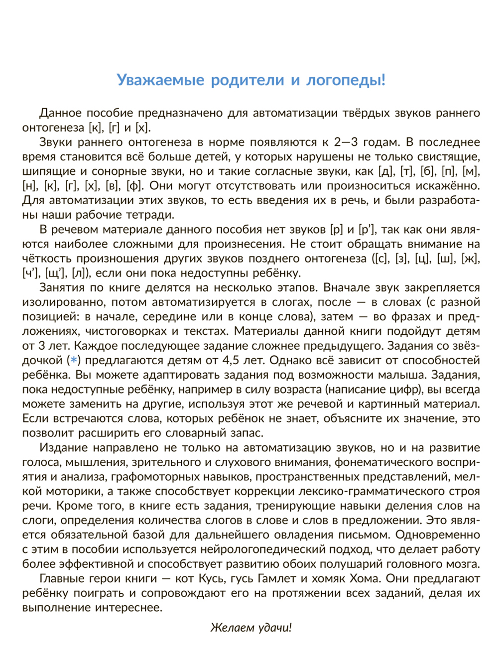 Аннотация: Автоматизируем звуки раннего онтогенеза (к), (г) и (х): рабочая тетрадь