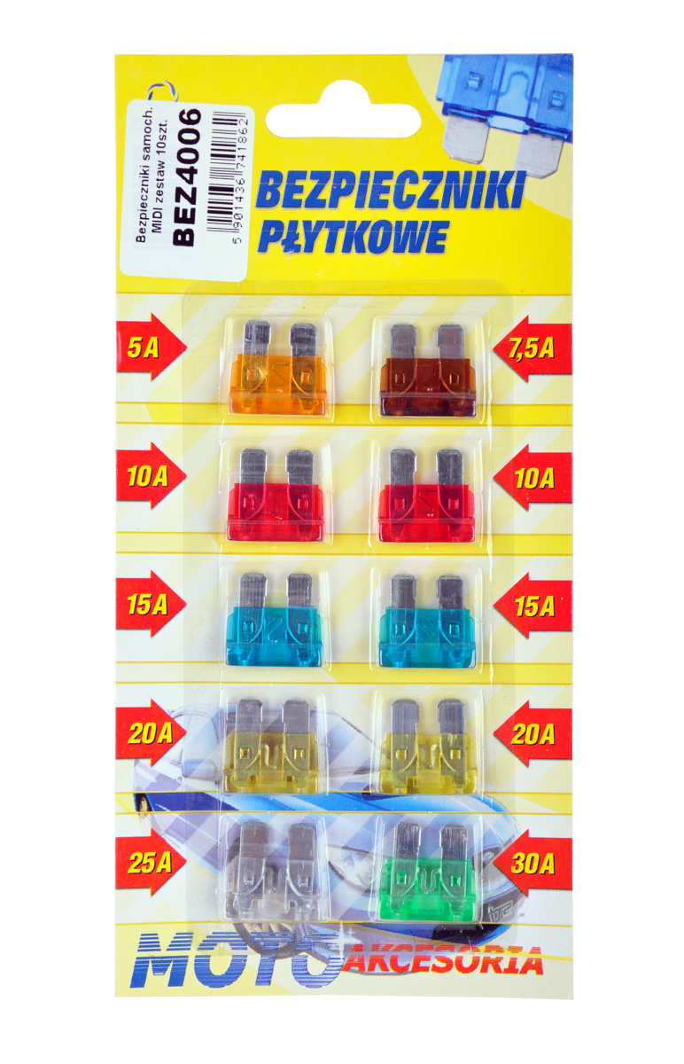 Автомобильные предохранители MINI, набор 10 шт. (5A,7,5A,10A,15A,20A,25A,30A)
