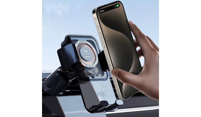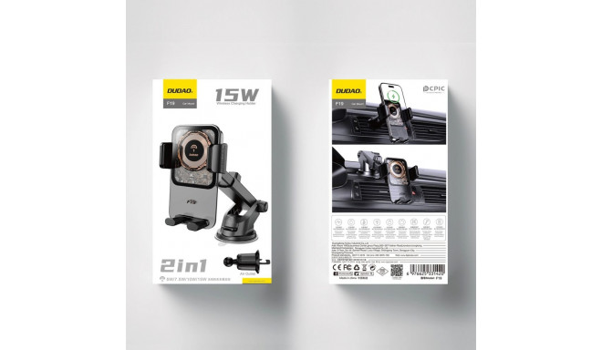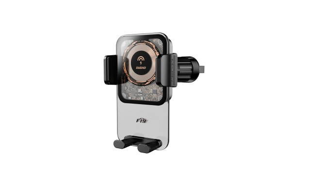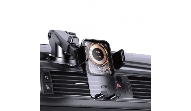 Автомобильный держатель Dudao F19 с зажимом и индуктивным зарядным устройством 15 Вт - черный