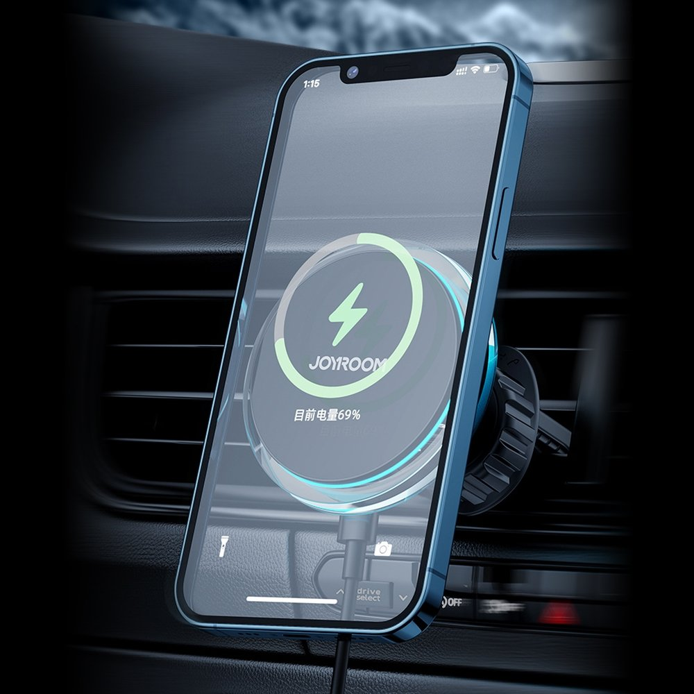 Автомобильный держатель Joyroom JR-ZS291 с беспроводной зарядкой / 15 Вт / MagSafe серебристого цвета