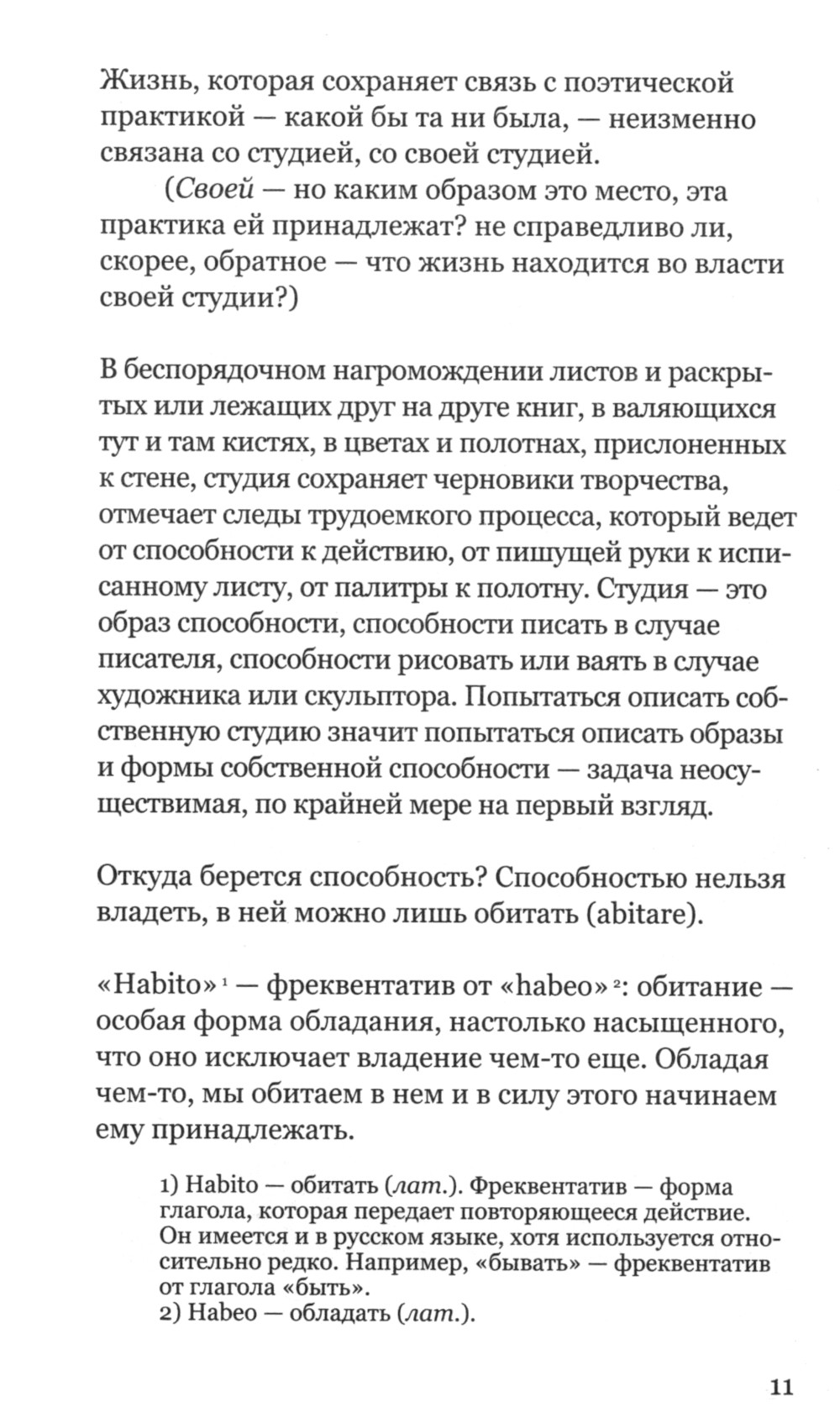 Это поэтическое эссе одной из главных фигур современной интеллектуальной мысли Джорджо Агамбена (род. 1942). Демонстрируя своему читателю кабинеты, в которых ему приходилось работать, итальянский философ пытается выстроить свой автопортрет через находившиеся там вещи. Для Агамбена рассуждать о себе оказывается возможным только говоря о других: поэтах, философах, художниках, друзьях, которые создали его воспоминания и вдохновили его на письмо. Поэтому автопортрет философа оказывается неразрывно связан с Мартином Хайдеггером и его семинарами в Ле-Тор, книгами Ханны Арендт, итальянской интеллигенцией и философскими размышлениями о природе памяти, любви и письме.
