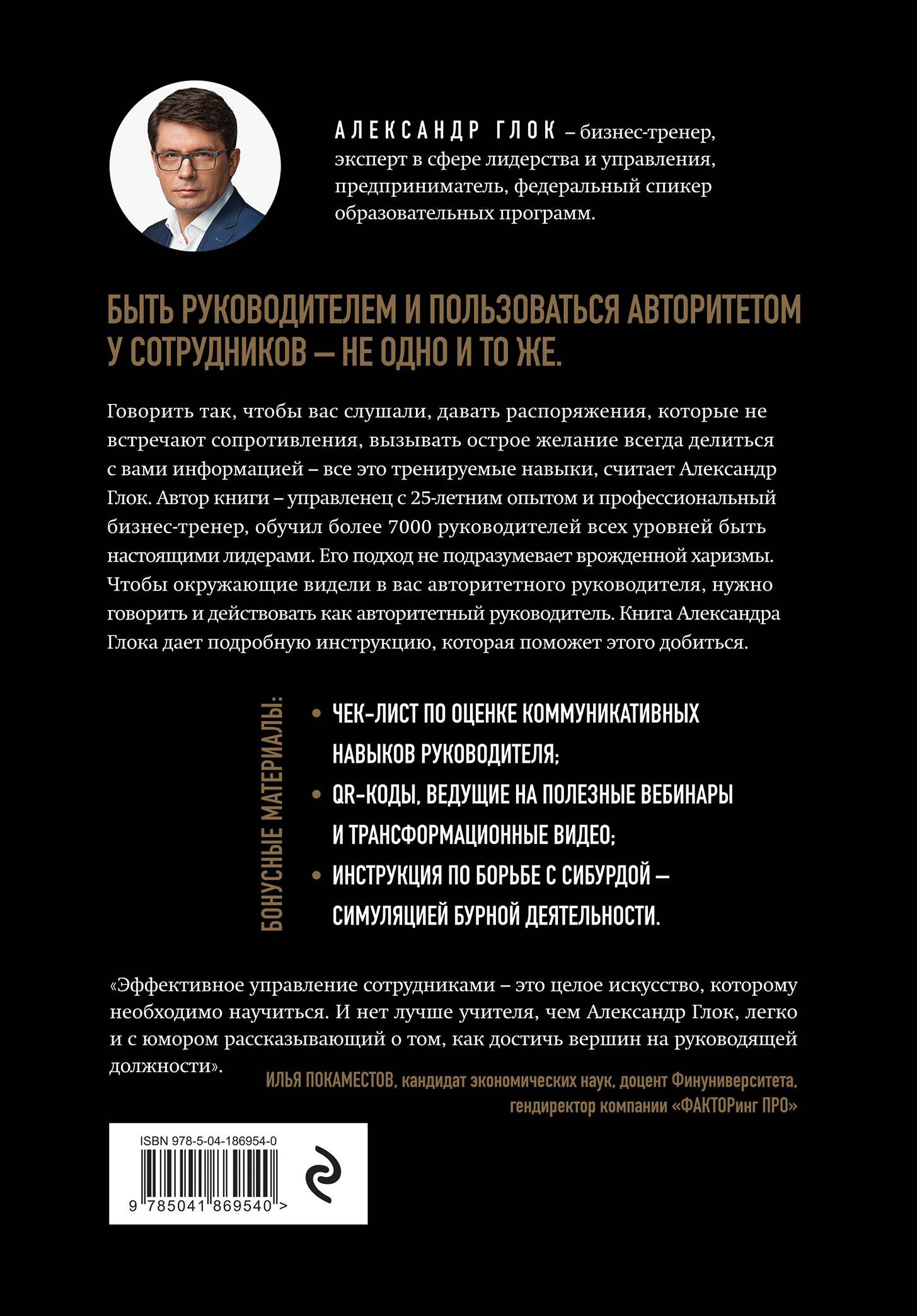 Быть руководителем и пользоваться авторитетом у сотрудников - не одно и то же. Говорить так, чтобы вас слушали, давать распоряжения, которые не встречают сопротивления, вызывать острое желание всегда делиться с вами информацией - все это тренируемые навыки, считает Александр Глок. Автор книги - управленец с 25-летним опытом и профессиональный бизнес-тренер, он обучил более 7000 руководителей всех уровней быть настоящими лидерами. Его подход не подразумевает врожденной харизмы. Чтобы окружающие видели в вас авторитетного руководителя, нужно говорить и действовать, как авторитетный руководитель. Книга Александра Глока дает подробную инструкцию, которая поможет этого добиться. Бонусные материалы: - чек-лист по оценке коммуникативных навыков руководителя; - QR-коды, ведущие на полезные вебинары и трансформационные видео; - инструкция по борьбе с сибурдой - симуляцией бурной деятельности.