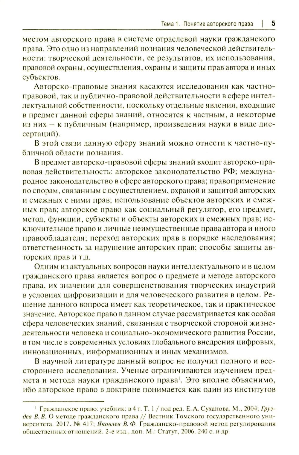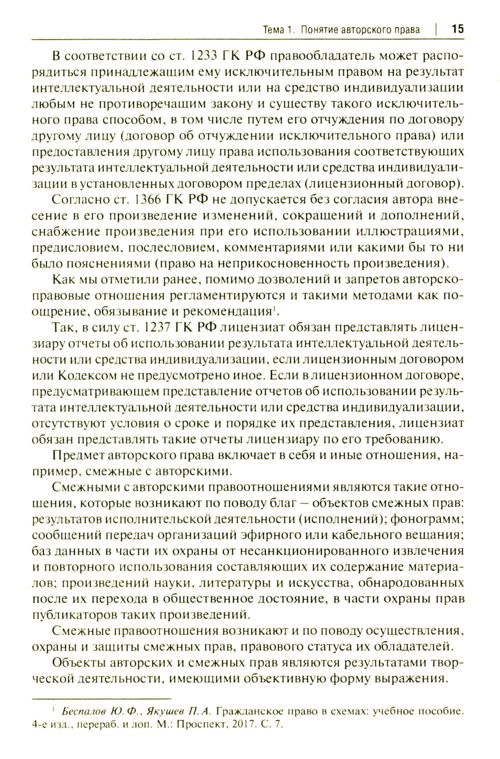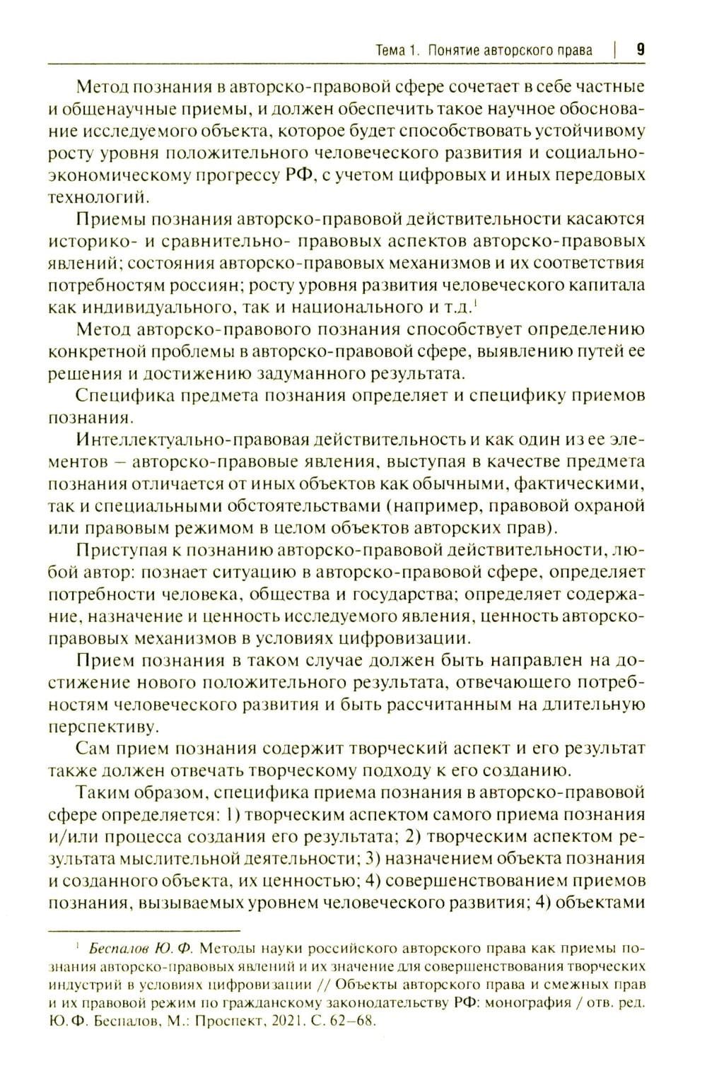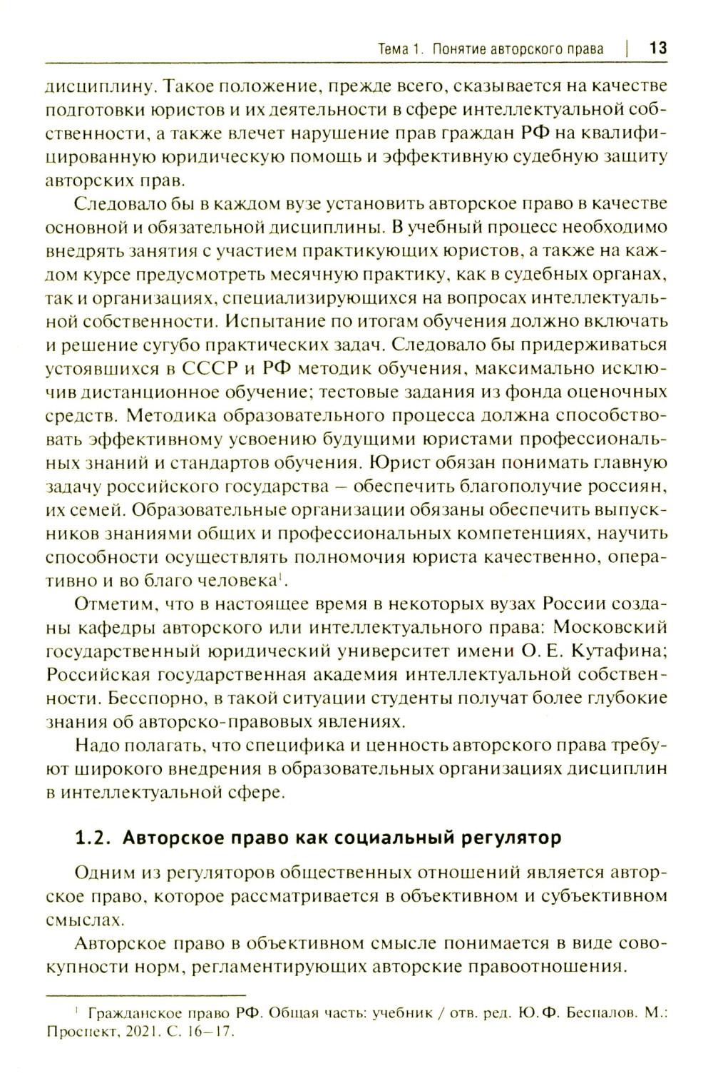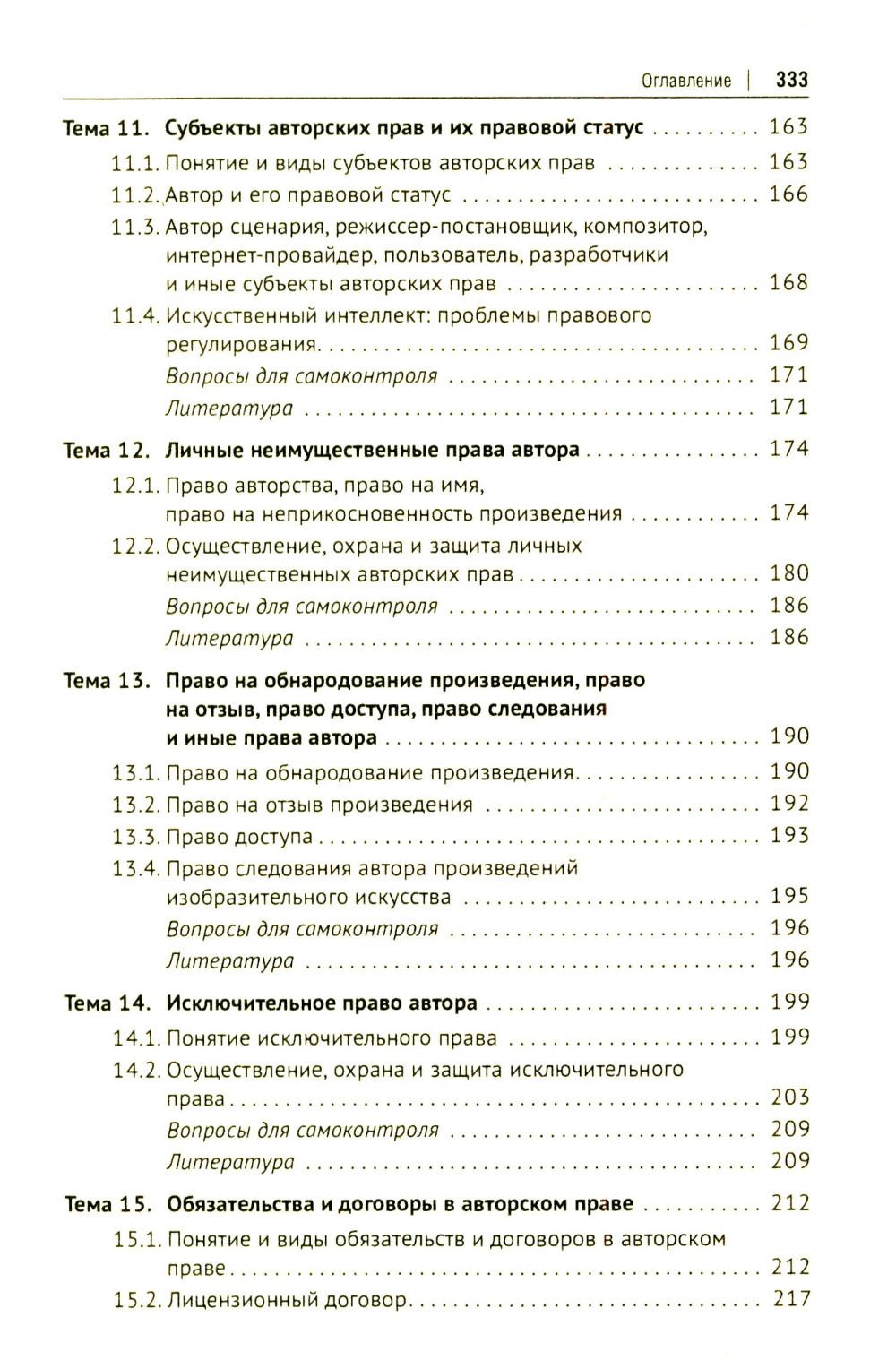 В учебнике представлены общие и специальные положения об авторском праве РФ: понятие как сферы знаний, учебной дисциплины, социального регулятора; источники авторского права; предмет, метод и принципы авторского права; авторское правоотношение; субъекты авторских прав; объекты авторских прав и их правовой режим; права автора; отчуждение исключительного права; осуществление, охрана и защита авторских прав; понятие и виды смежных прав, их обладатели; осуществление, охрана и защита смежных прав; объекты смежных прав и многие другие. Законодательство приведено по состоянию на июнь 2022 года. Учебник рассчитан на студентов юридических вузов и юридических факультетов, аспирантов, преподавателей и каждого, кто интересуется авторским правом РФ и его ценностью для человеческого развития.| Издательство | Проспект |