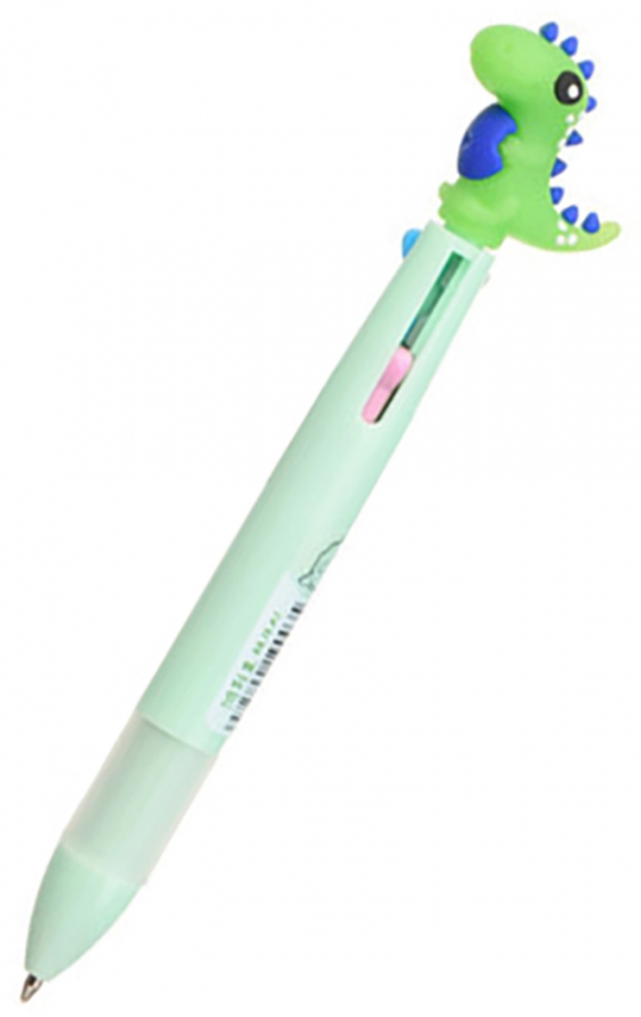 Авторучка 3-х цветная, детская "Динозаврик"; цветной корпус, резиновый держатель, наконечник-динозавр.