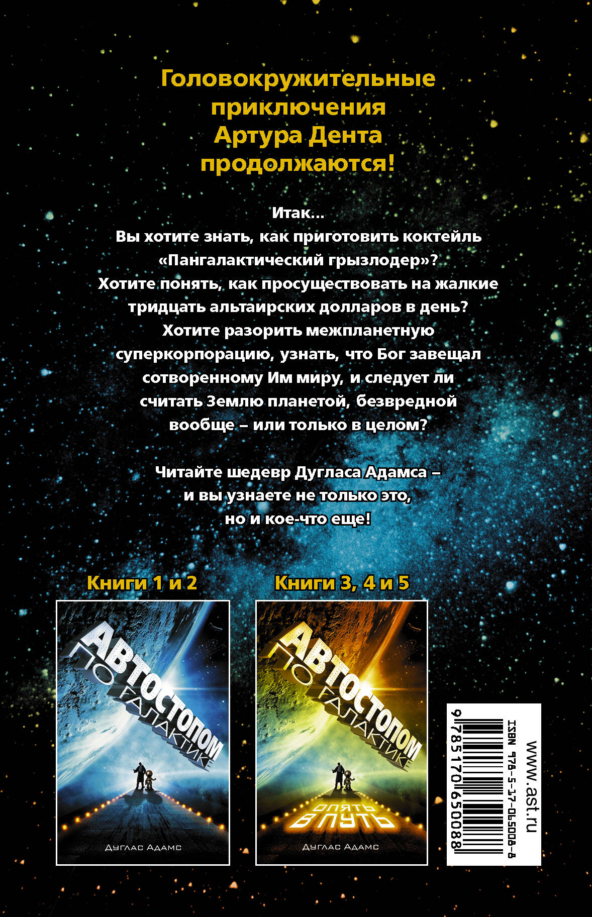 Аннотация: Автостопом по Галактике. Опять в путь; Жизнь ,Вселенная и все остальное; Всего хорошего, и спасибо за рыбу!; В основном безвредна