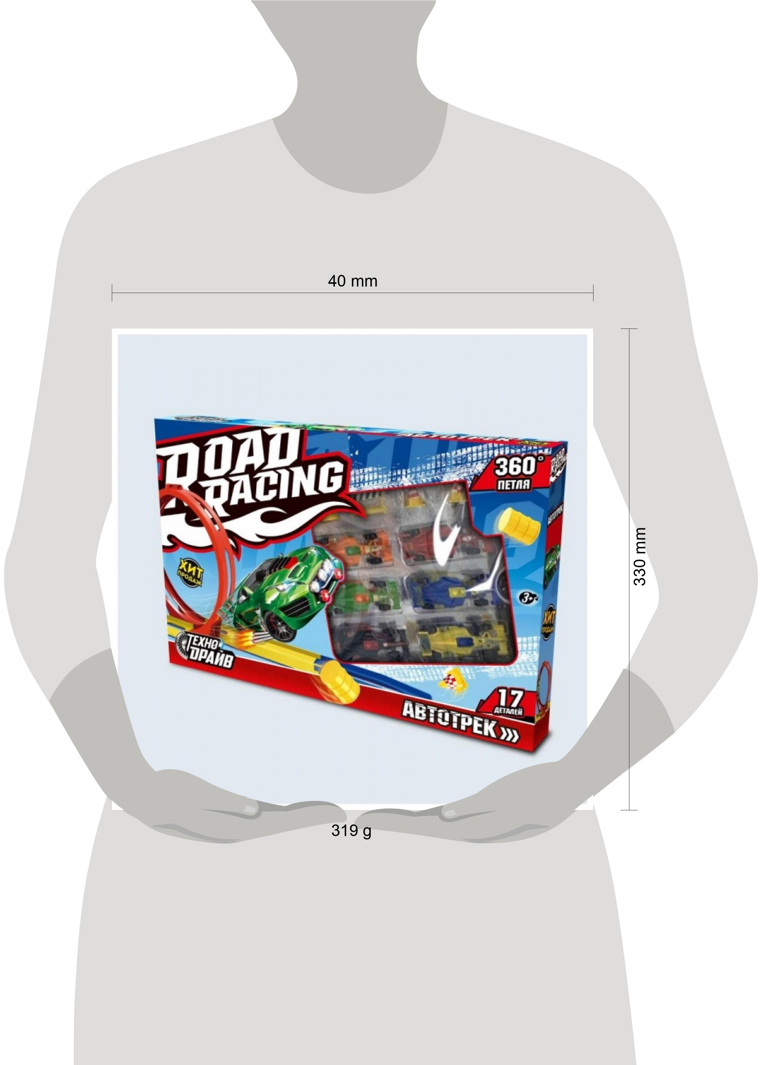 Гибкий автотрек "Road Racing" ТМ "Технодрайв" обязательно понравится вашему ребёнку. Особенности и комплектация: - 17 деталей - 6 машинок - петля 360 градусов - яркий дизайн Этот яркий автотрек увлечёт вашего ребёнка и вдохновит на множество новых игровых сюжетов. Он с удовольствием будет запускать машинку по интересной трассе, выполняя различные трюки. Игра с набором ТМ "Технодрайв" развивает: - воображение - координацию движений - внимание - ловкость - моторику Размер: 39 х 25 х 4 см. Материал: пластмасса. Рекомендовано детям от 3-х лет.