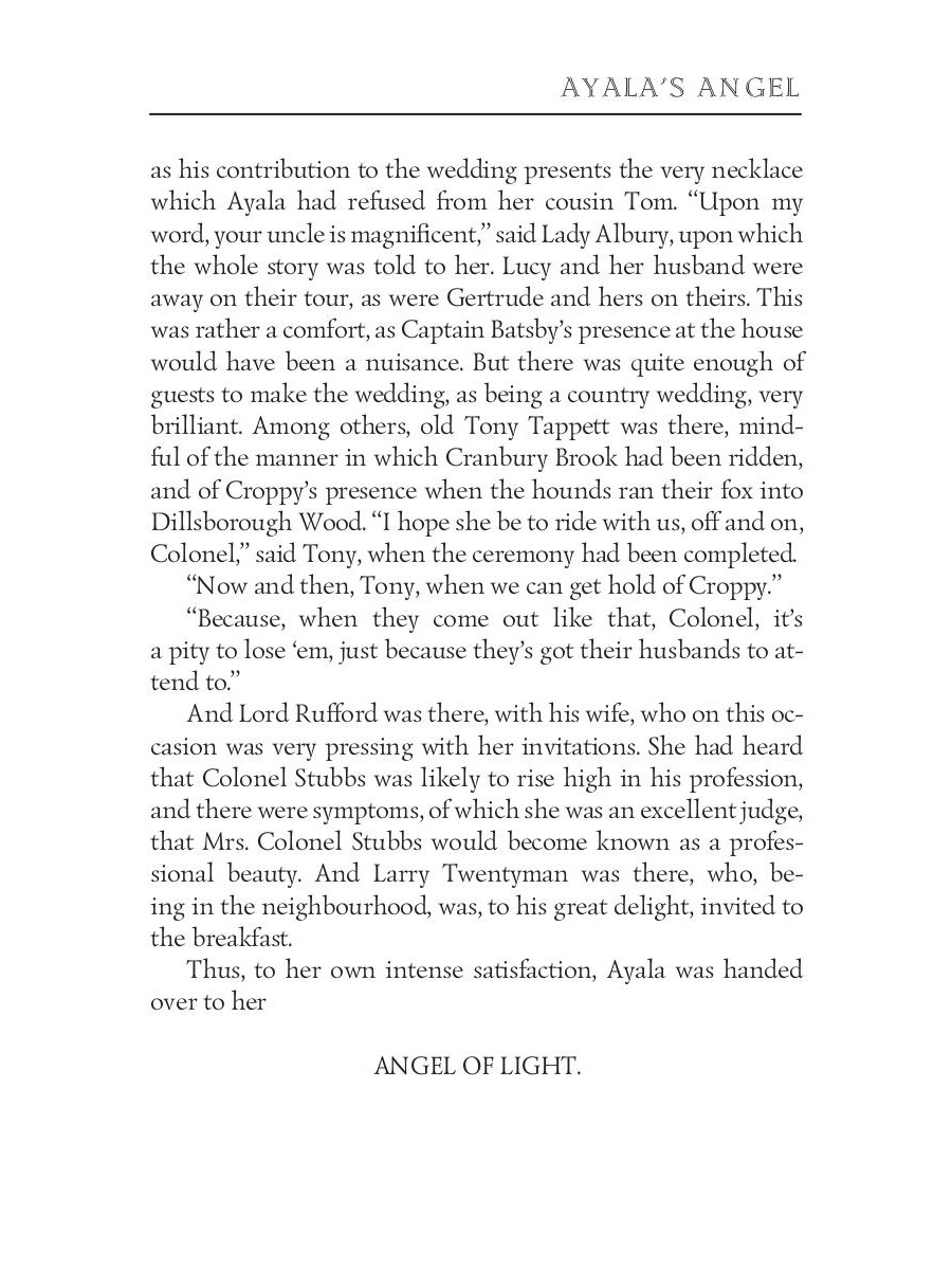 Anthony Trollope (1815 - 1882) was an English novelist of the Victorian era. Among his best-known works is a series of novels collectively known as the Chronicles of Barsetshire, which revolves around the imaginary county of Barsetshire. "Ayala's Angel" is a novel that focuses on two orphaned sisters, Lucy and Ayala Dormer, Ayala especially, and their trials, with their relatives. It was written as a stand-alone novel rather than as part of a series, though several of the minor characters appear in other novels by Trollope.| Издательство | Т8 RUGRAM |