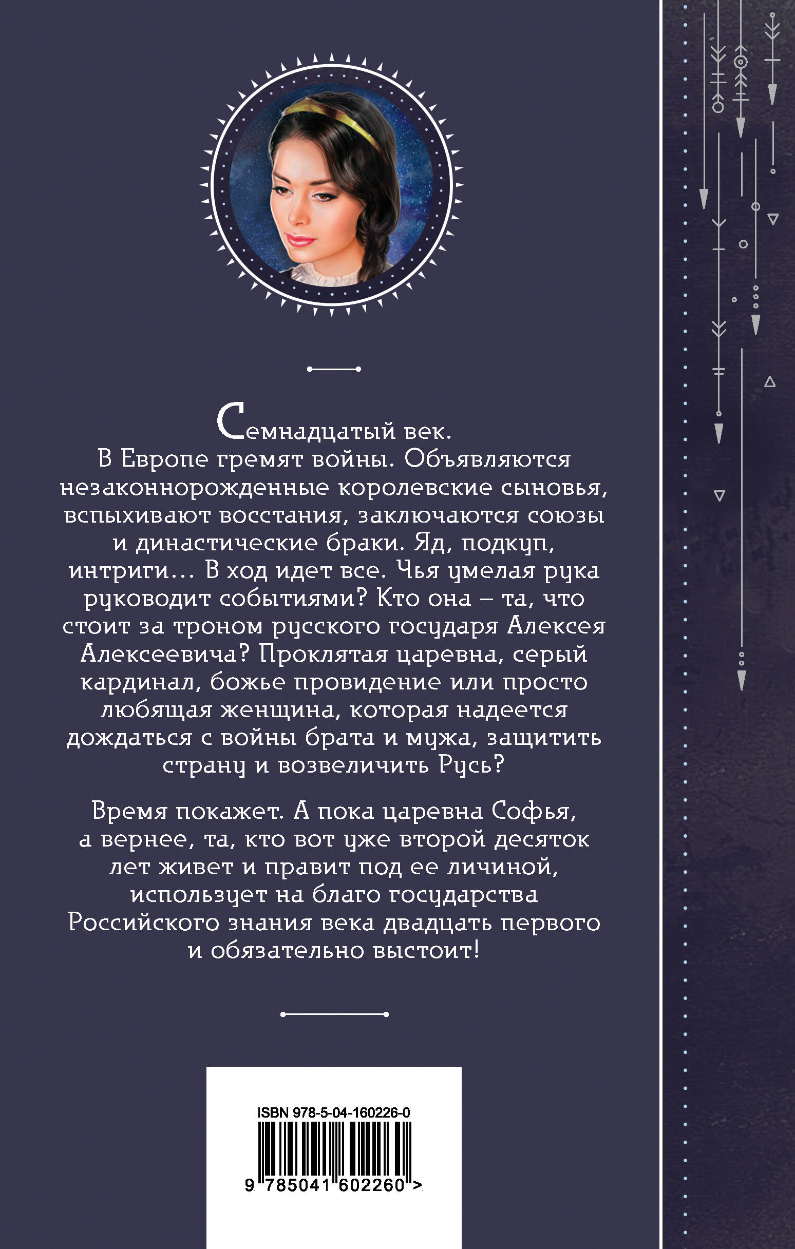 Семнадцатый век. В Европе гремят войны. Объявляются незаконнорожденные королевские сыновья, вспыхивают восстания, заключаются союзы и династические браки. Яд, подкуп, интриги… В ход идет все. Чья умелая рука руководит событиями? Кто она - та, что стоит за троном русского государя Алексея Алексеевича? Проклятая царевна, серый кардинал, божье провидение или просто любящая женщина, которая надеется дождаться с войны брата и мужа, защитить страну и возвеличить Русь? Время покажет. А пока царевна Софья, а вернее та, кто вот уже второй десяток лет живет и правит под ее личиной, использует на благо государства Российского знания века двадцать первого и обязательно выстоит!| Издательство | ООО "Издательство "Эксмо" |