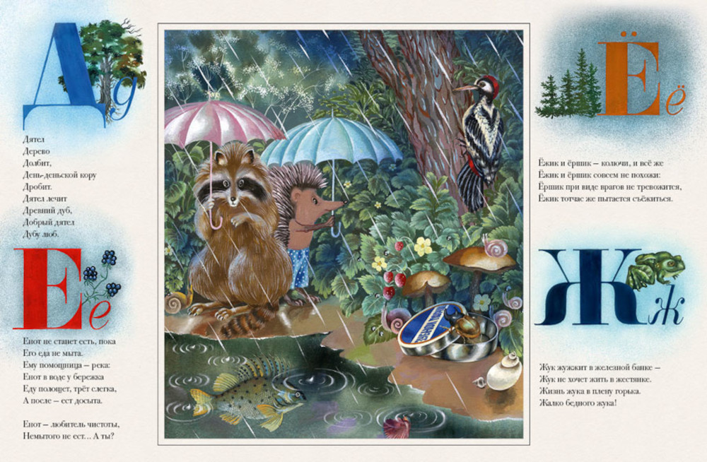 Стихотворные азбуки бывают разными: простыми и понятными, увлекательными и весёлыми, изобретательными и остроумными. «Азбука» Виктора Лунина - настроенческая, лирическая, поэтическая не только в прямом значении этого слова, но и в переносном - эмоциональная, очаровывающая. Здесь буква «А» - не аист, арбуз, апельсин. «А» - это август, когда алеет закат, окрашивая алым всё вокруг - это умиротворяющая картина поздней осени. «З» - не заяц, зебра или воздушный змей. «З» - это вопрос «зачем?», на который иногда хочется найти ответ: зачем залилась трелью зарянка, зачем зеленеет земля… «Азбука» Виктора Лунина признана эталоном передачи буквенной звукописи. Иллюстрировать эту тонкую игру со звуками (необычайно важную для того, чтобы ребёнок не просто выучил буквы и звуки, но и научился их чувствовать), нельзя прямолинейно. Художник Вера Павлова создала особые уникальные композиции, где-то объединяя героев нескольких стихотворений, где-то придумывая свой отвлеченный сюжет. И всё это для того, чтобы передать главное - особое настроение, присущее каждой строчке «Азбуки» Виктора Лунина.| Издательство | Речь |