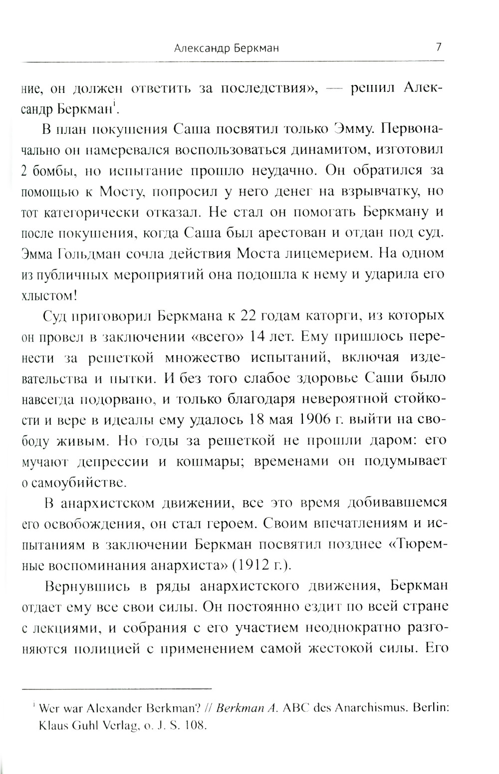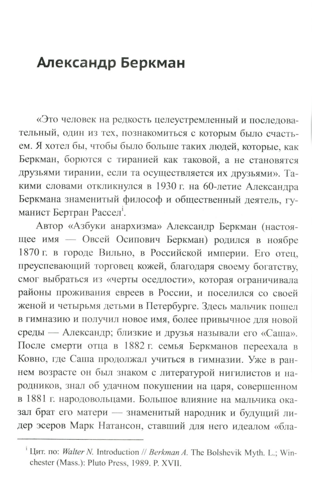 Книгу "Азбука анархизма", написанную видным американским анархистом российского происхождения Александром Беркманом (1870--1936), известный историк Пол Аврич назвал "наиболее ясным изложением коммунистического анархизма на английском и любом ином языке". В этой работе в простой и ясной форме разъясняются основные положения анархо-коммунистической доктрины и тактики: критика государства, капитализма и большевизма, обоснование ценностей свободы и равенства, представление о методах борьбы прямого действия, о социальной революции и безгосударственном общественном устройстве, основанном на всеобщем самоуправлении. В издание включены также посвященные Кронштадтскому восстанию отрывки из дневника, который Беркман вел в Советской России в 1920--1921 гг., а также его статья о Кронштадте 1921 года. Книга рассчитана на историков, философов, социологов и политологов, а также всех интересующихся анархизмом.| Издательство | ЛЕНАНД |