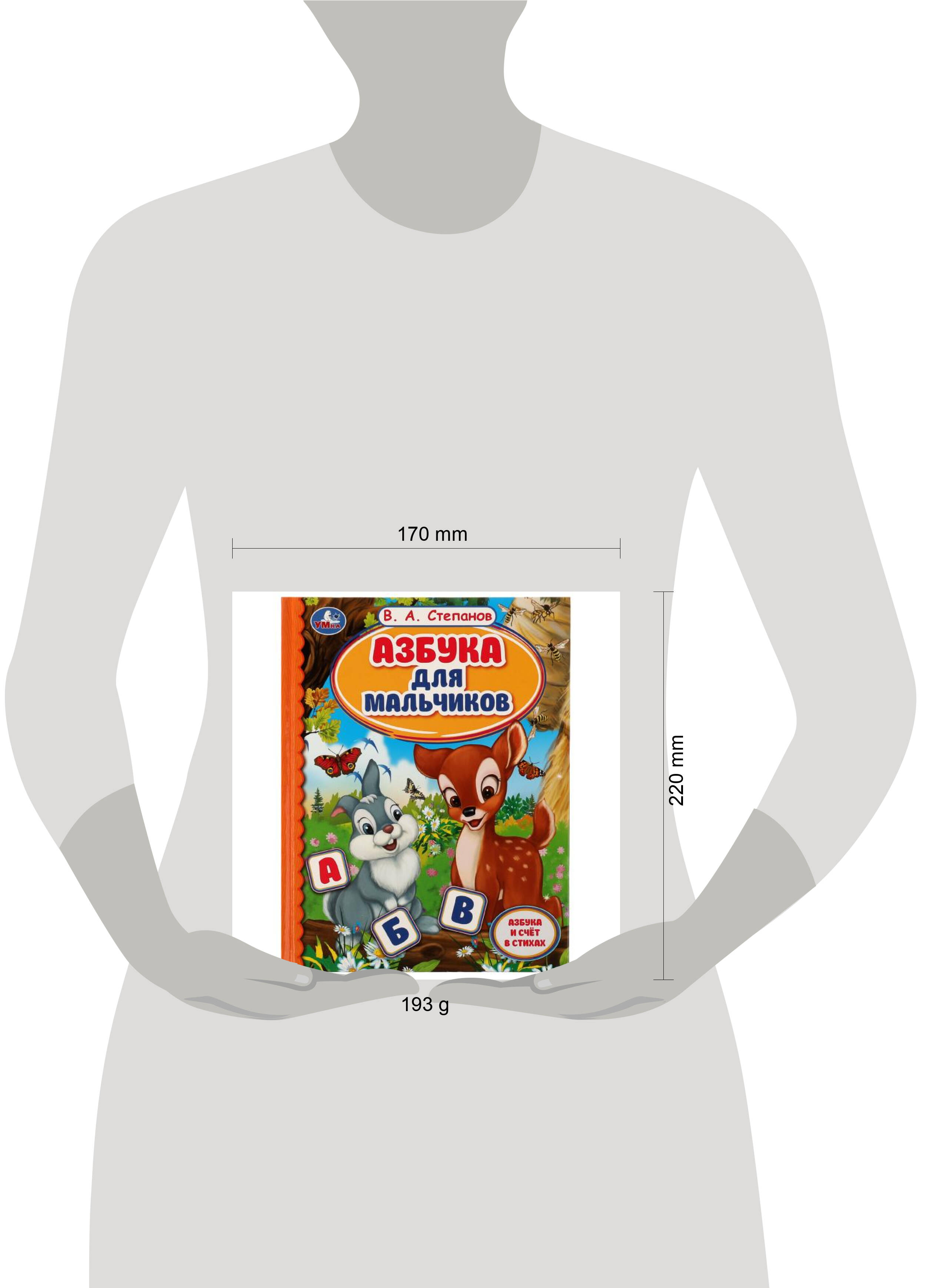 Книга "В. А. Степанов. Азбука для мальчиков" из серии "Библиотека детского сада" ТМ "УМка" - замечательный подарок для маленьких непосед, которые только учатся читать: - азбука и счёт в стихах Владимира Степанова - крупные буквы - красочные иллюстрации - твёрдый переплёт - удобный формат Яркие красивые иллюстрации и добрые стихи - это то, что нужно для первого обучения чтению и знакомства с цифрами. С такой книгой изучать буквы будет не только полезно, но и увлекательно, а занимательные тексты стихов и красочное оформление не дадут малышу заскучать. Благодаря небольшому размеру книжку можно взять с собой в дорогу. Чтение книги-азбуки ТМ "УМка" поможет быстро освоить алфавит, а также будет развивать: - память - речь - внимание Объём: 48 стр. Формат: 165 x 215 мм. Материал: офсетная бумага. Рекомендовано детям старшего дошкольного возраста.| Издательство | С-Маркет ООО |