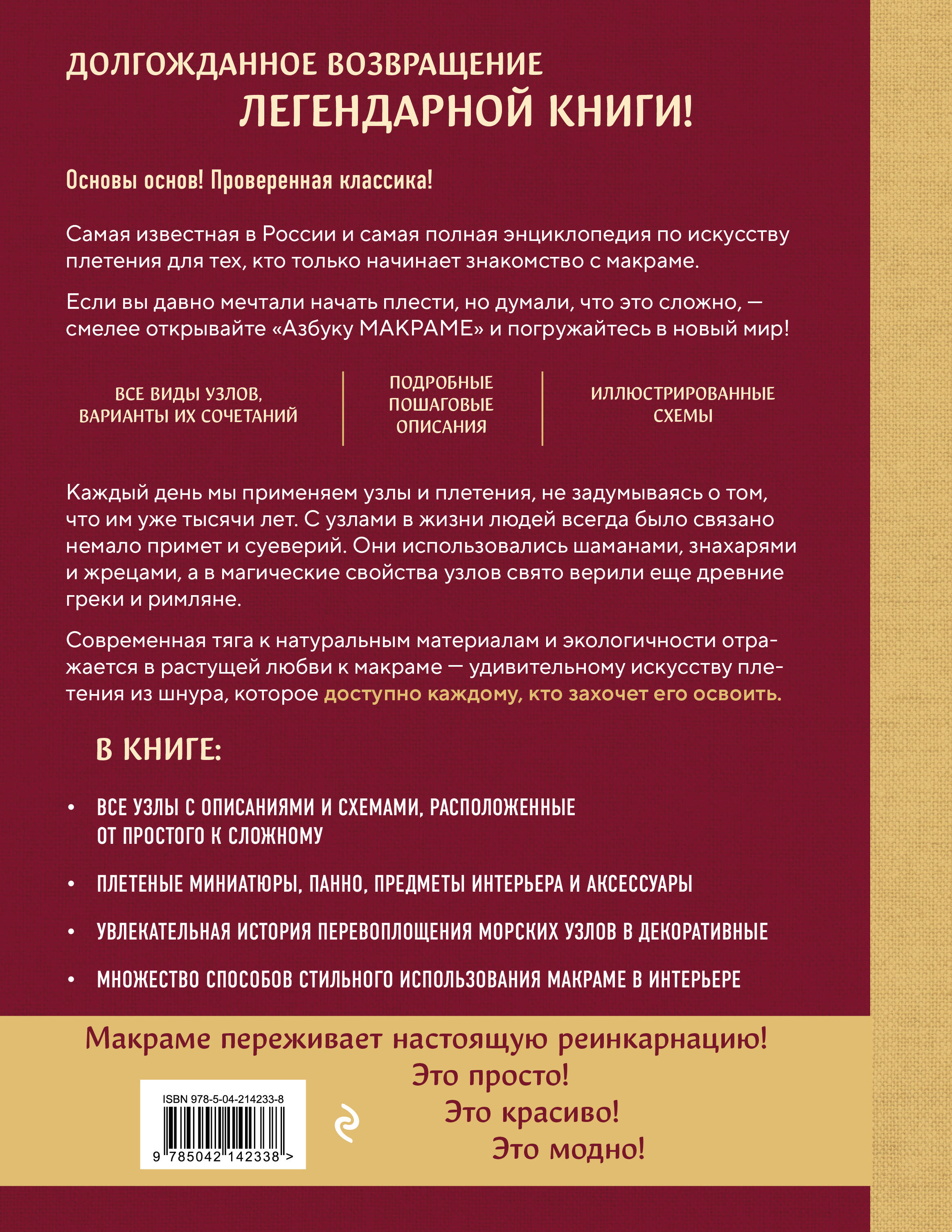 Аннотация: Азбука МАКРАМЕ. Самый полный авторский курс вязания узлов и плетения (мягкая обложка)
