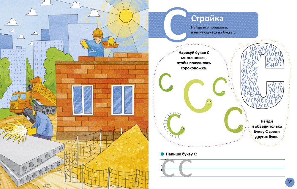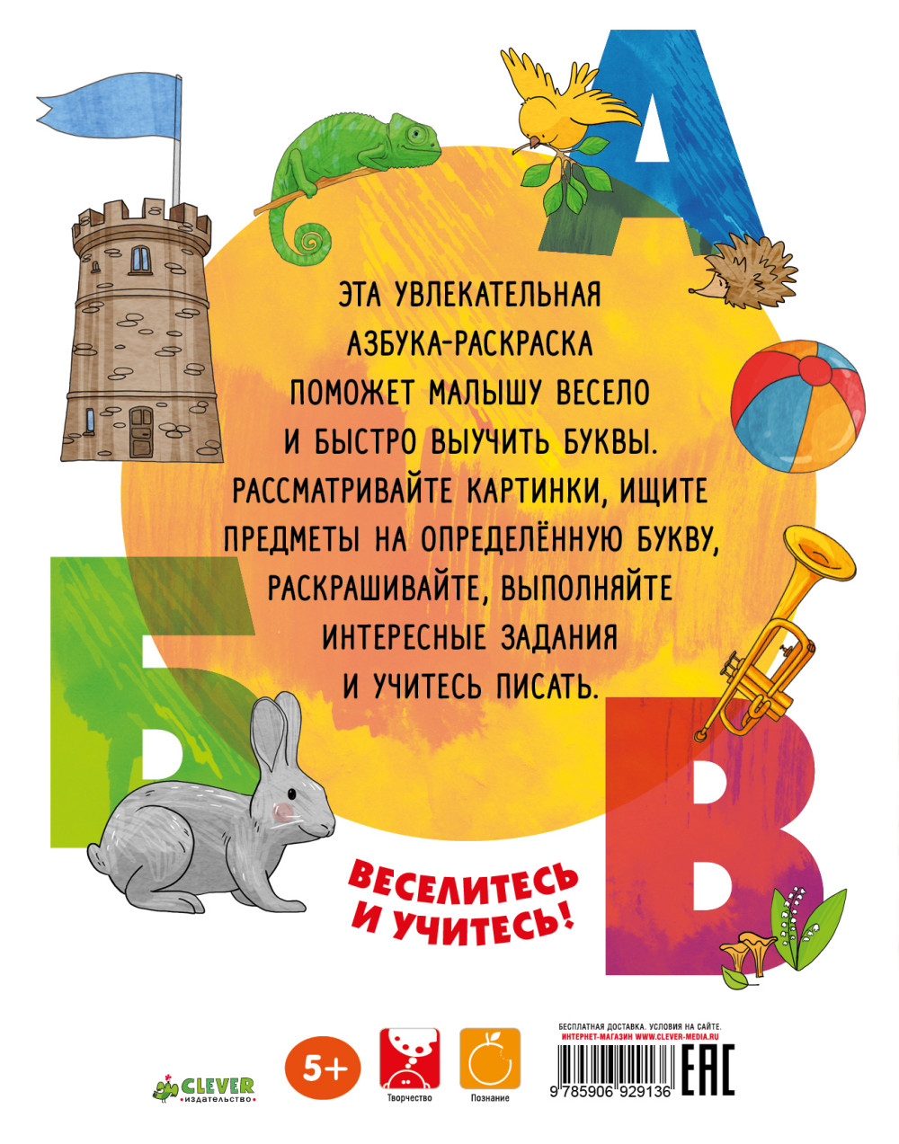 Эта увлекательная азбука-раскраска поможет малышу весело и быстро выучить буквы. Рассматривайте картинки, ищите предметы на определённую букву, раскрашивайте, выполняйте интересные задания и учитесь писать.