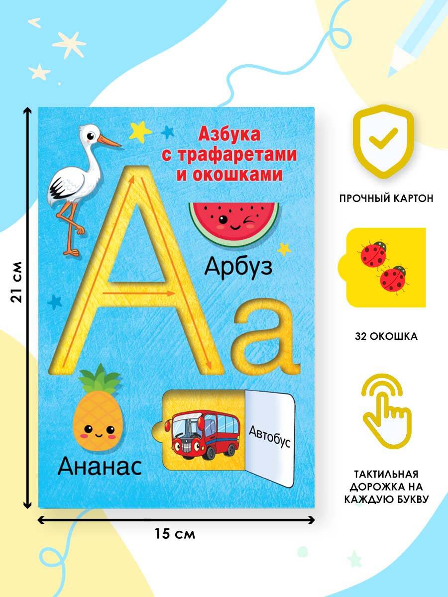 Аннотация: Азбука с трафаретами и окошками