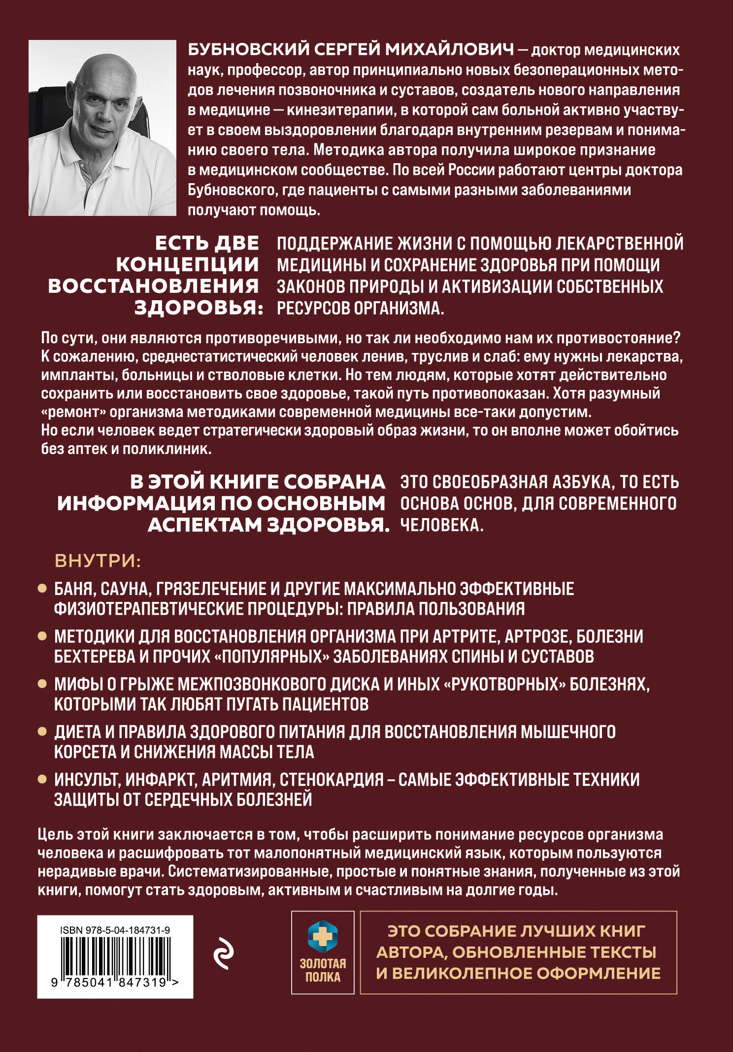 К сожалению, среднестатистический человек ленив, труслив и слаб: ему нужны лекарства, имплантаты, больницы и стволовые клетки. Тем же, кто действительно хочет сохранить или восстановить свое здоровье, такой путь противопоказан. Хотя разумный «ремонт» организма методиками современной медицины все-таки допустим, но если человек ведет стратегически здоровый образ жизни, то он вполне может обойтись без аптек и поликлиник. В этой книге собрана информация по основным аспектам здоровья. Это своеобразная азбука, то есть основа основ, для современного человека. Внутри: - Баня, сауна, грязелечение и другие максимально эффективные физиотерапевтические процедуры: правила пользования. - Методики для восстановления организма при артрите, артрозе, болезни Бехтерева и прочих «популярных» заболеваниях спины и суставов. - Мифы о грыже межпозвонкового диска и иных «рукотворных» болезнях, которыми так любят пугать пациентов. - Диета и правила здорового питания для восстановления мышечного корсета и снижения массы тела. - Инсульт, инфаркт, аритмия, стенокардия - самые эффективные техники защиты от сердечных болезней.| Издательство | ООО "Издательство "Эксмо" |