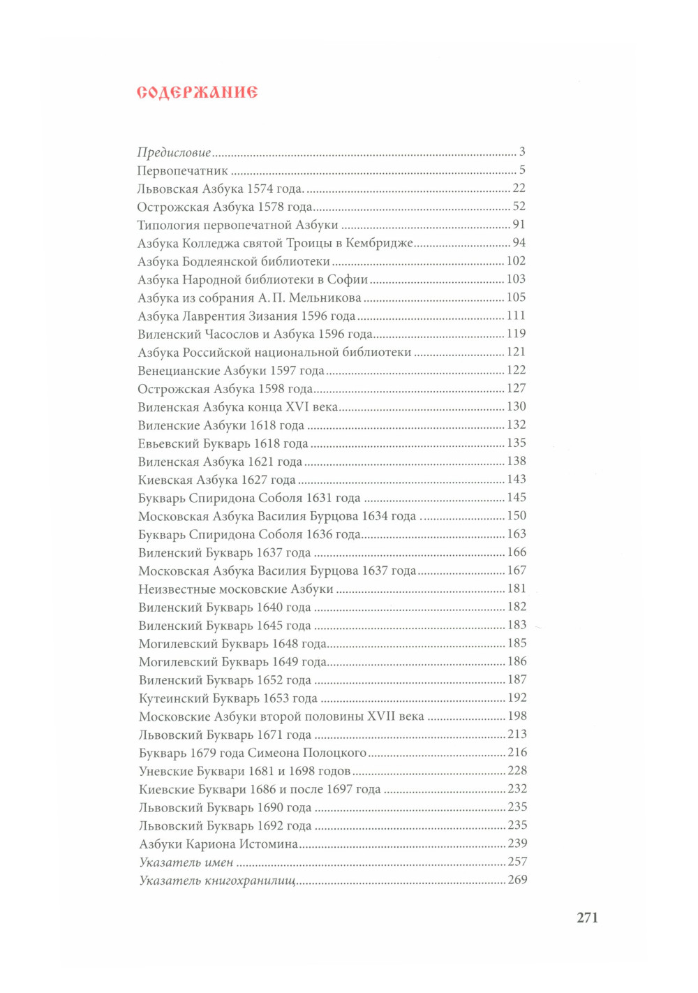 В ней рассматривается состав изданий XVI-XVII вв., изучение их в историографии. Особое внимание уделено первопечатным Азбукам Ивана Федорова, впервые обнаруженным и введенным в научный оборот только в середине XX в. и хранящимся преимущественно в зарубежных книжных собраниях. Анализируются издания, увидевшие свет в таких крупных православных центрах, как Вильна, Киев, Могилев, Львов, Кутейно, Унев. Особое внимание уделяется первым московским Букварям Василия Бурцева, московским Азбукам второй половины XVII в., в том числе Симеона Полоцкого и Кариона Истомина. В книге подробно рассказывается история бытования и введения в научный оборот многих экземпляров Букварей.