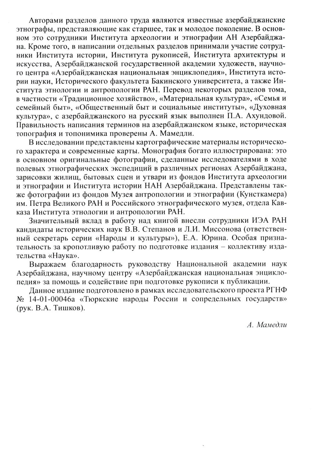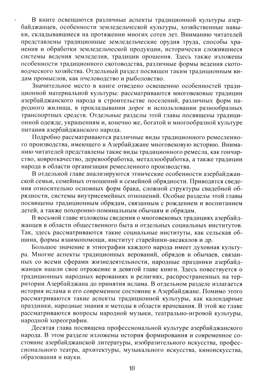 Очередной том фундаментальной серии «Народы и культуры» посвящен историко-этнографическому описанию азербайджанцев - одного из интереснейших народов Кавказа, создателя древней самобытной этнической культуры. В монографии рассматриваются характеристики историко-культурной среды народа (историко-этнографические зоны, этнографические группы, язык и его роль в межэтнических контактах, история письменности, демография, историко-антропологические сведения), основные этапы этнополитической истории и процессы становления азербайджанской нации. Приводятся данные о традиционном хозяйстве (земледелие, скотоводство, промыслы) и ремеслах (гончарство, ковроткачество, деревообработка, металлообработка, ювелирное дело), материальной культуре, семье и семейной обрядности, общественном быте и социальных институтах, профессиональной и духовной культуре, об азербайджанских диаспорах. Для историков, этнологов, культурологов и широкого круга читателей.| Издательство | Наука |