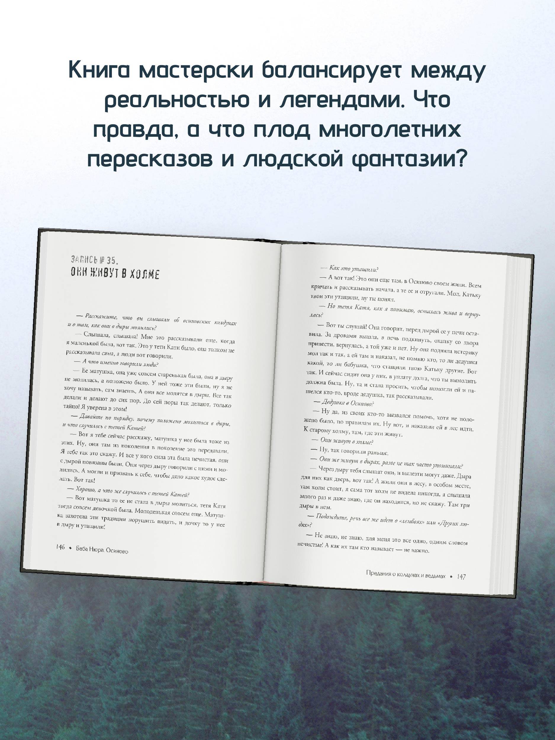 Основа данной книги - былички, связанные с ныне не существующей деревней Осиново и ее жителями, которых люди в округе считали сильными ведьмами и колдунами, способными творить чудеса, хотя чудеса эти и нельзя было назвать добрыми. Правда ли, что в деревне Осиново существовали уникальные культы и традиции? Или же это выдумки, родившиеся спустя десятилетия при пересказе людьми друг другу загадочных быличек? Ответом могут послужить заметки очевидцев, собранные в разное время все в той же части Тихвинского района Ленобласти, знакомой читателям по другим книгам лаборатории "Баба Нюра". Книга не призывает читателя с пристрастием детектива исследовать подлинность того, что принято называть "деревенским мистицизмом". Вместо этого она предлагает окунуться в манящую глубину легенд, которые передавались из уст в уста, из поколения в поколение, и проникнуться атмосферой священного трепетного страха перед лесом и его древними тайнами.| Издательство | Издательство "АСТ" |