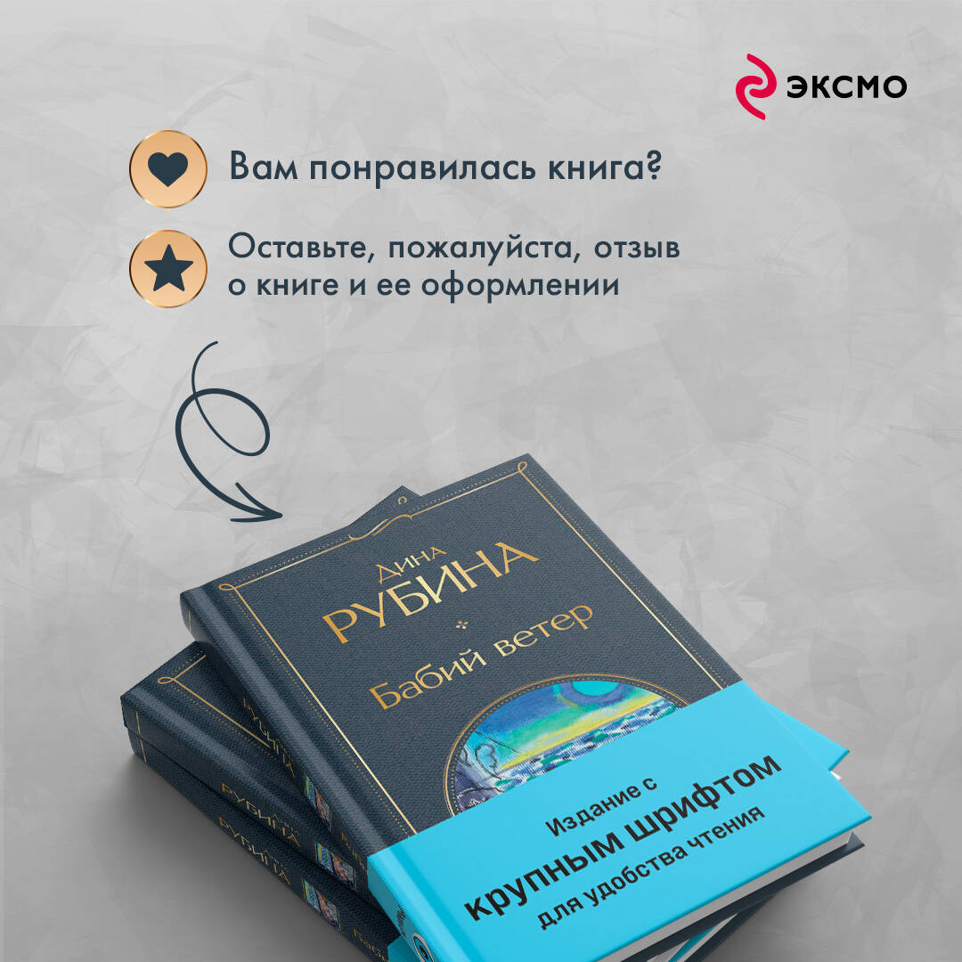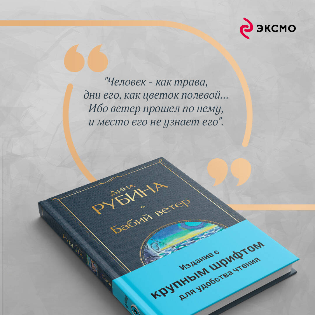 Об авторе Дина Рубина - признанный мастер, живой классик современной литературы, популярный прозаик, книги которого пользуются успехом не только у читателей, но и у профессионального сообщества. Произведения Рубиной были удостоены многих престижных литературных премий и наград. Жанр Повесть. О книге Шокирующая и правдивая, долгожданная книга «Бабий ветер» - это история о Женщине и о Любви. За спиной у главной героини советское детство, годы пилотирования воздушного шара и огромная личная потеря. Ныне Галина вынуждена трудиться косметологом в Нью-Йорке, и здесь она сталкивается с самыми разными людьми, зачастую искалеченными физически и душевно. Цитата «Эта повесть, в которой нет ни одного матерного слова, должна бы выйти под грифом 18+, а лучше 40+… - ибо всё в ней настолько обнажено и беззащитно, цинично и пронзительно интимно, что во многих сценах краска стыда заливает лицо и плещется в сердце - растерянное человеческое сердце, во все времена отважно и упрямо мечтающее только об одном: о любви…» - Д. Рубина| Издательство | ООО "Издательство "Эксмо" |
