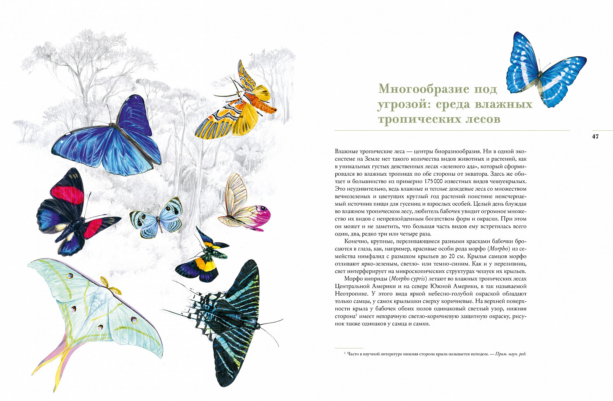 В этой уникальной книге, посвященной бабочкам, рассматриваются как единое целое все стадии развития бабочки и весь окружающий микрокосмос, весь спектр взаимосвязей, из которых состоит жизненная среда этих насекомых. Известный немецкий художник Иоганн Брандштеттер в сотрудничестве с биологом Эльке Циппель показывают многообразие сред обитания бабочек - лугов с бедными почвами, верховых болот и болотных лугов, высокогорий, пойменных лесов, тундры, тайги, крайнего севера Евразии, влажных тропических лесов, опушек и лугов с высоким травостоем, пахотных полей и других, а также многообразие самих бабочек, предваряя рассказ кратким введением в основы систематики. Описан внешний вид бабочек, их жизненный цикл, то, чем они питаются и где обитают, как самцы привлекают самок, какие у бабочек существуют враги, как они защищаются от нападений и где, когда и как их лучше наблюдать. В книге учтены самые современные данные и научные публикации по теме, а благодаря потрясающим иллюстрациям издание станет отличным подарком истинным ценителям прекрасного.
