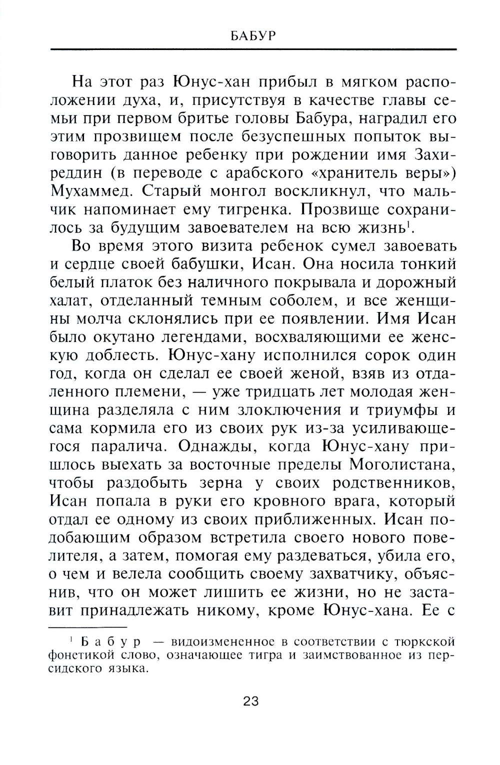 Эта книга - беллетризованное жизнеописание потомка Тимура и Чингисхана, основателя династии Великих Моголов, в которой ярко повествуется обо всех значительных событиях эпохи его правления. В ней оригинально сочетаются авторская интерпретация исторических фактов и фрагменты из «Бабур-наме» - автобиографического произведения самого Бабура, что позволяет читателю зримо ощутить атмосферу ушедшей эпохи.| Издательство | Центрполиграф |