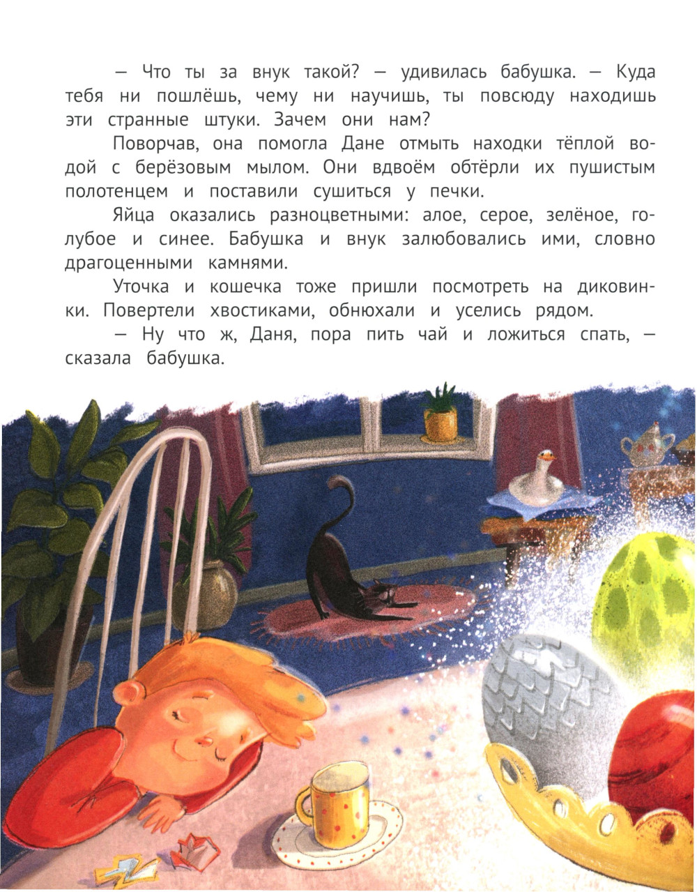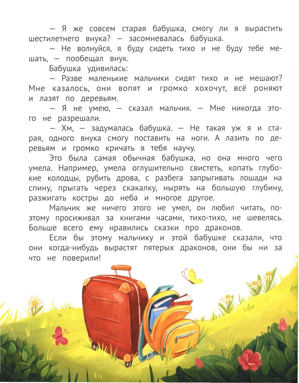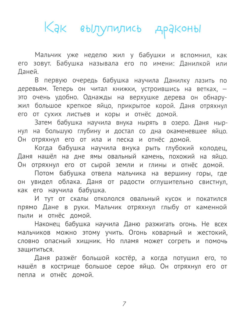 Жил-был тихий и робкий мальчик Даня, который боялся даже собственной тени. Родители отправили мальчика к бабушке в деревню. Там Даня нашёл пять загадочных яиц, из которых вылупились настоящие драконы! Маленькие и озорные дракончики перевернули тихий домик бабушки вверх дном. Каждый день с ними становится невероятным испытанием, полным веселья, хаоса и неожиданных открытий. Но самое главное, дракончики научили Даню дружить, невзирая на различия, и защищать друзей, преодолевая робость и страх. Эта волшебная и трогательная история, полная ярких иллюстраций и доброго юмора, подходит для детей от 4 лет. Она покажет маленьким читателям, что настоящая дружба не знает преград и каждый может стать героем.| Издательство | Феникс |