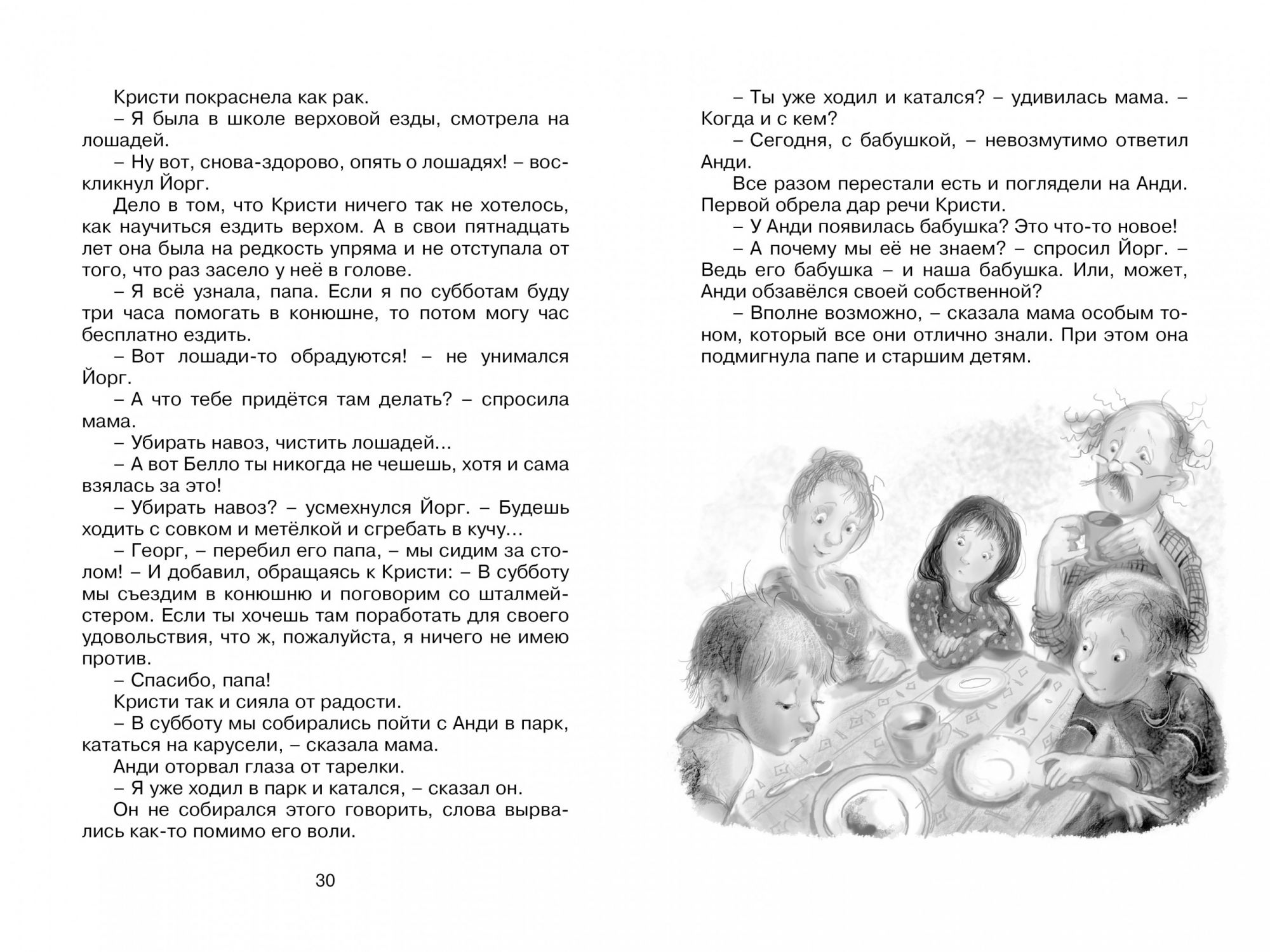 В книгу австрийской писательницы Миры Лобе вошли две сказочные повести в замечательном переводе Лилианны Лунгиной - «Бабушка на яблоне» и «Как было дело с Мохнаткой». Обе истории рассказывают о мире детских фантазий, о любви к животным, о тёплых семейных отношениях. Если ты одинок, то всегда найдётся Яблоневая бабушка, с которой можно вволю полакомиться мороженым и конфетами, покататься на каруселях и лошадках и от которой никогда не услышишь запретное слово: «нельзя». Она ждёт тебя на яблоне для всяких приключений.