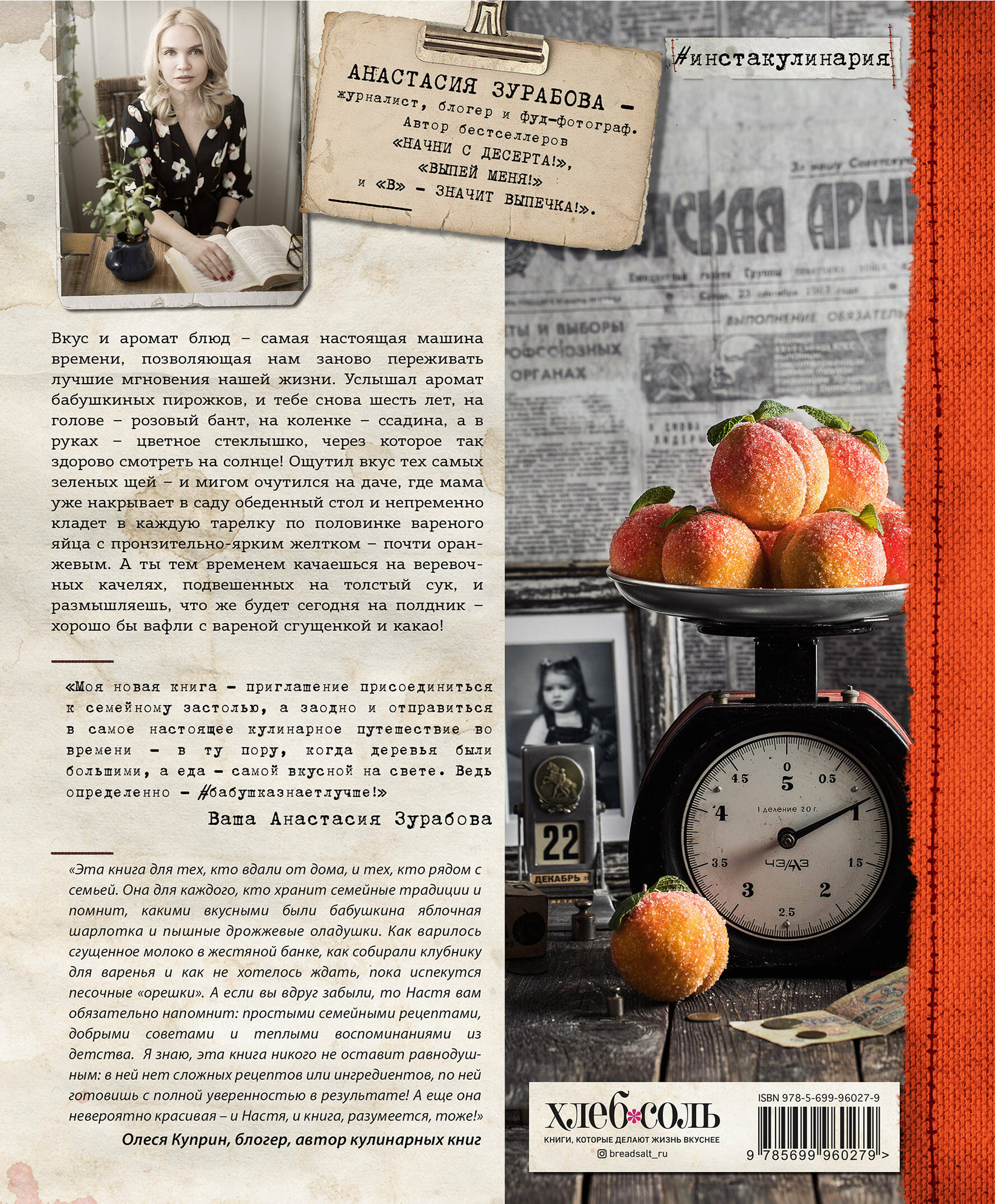 Пожалуй, у каждой семьи есть свои фирменные блюда, рецепты которых передаются из поколения в поколение, и если однажды собрать их вместе, получится самая ценная кулинарная книга на свете. Они ждут своего часа в пожелтевших от времени общих тетрадях, исписанных размашистым бабушкиным почерком, с обязательными заметками на полях и вклейками из отрывных календарей и журналов. Их странички хранят тепло маминых рук и свидетельства активного чтения в виде пятен жира и местами расплывшихся от воды чернил. Они даже пахнут как-то по-особенному - теплом, уютом и счастливым детством. Такие кулинарные «тома» - это не просто истории отдельных семей, а срез целой эпохи, давно канувшей в Лету, но при этом многими из нас до сих пор горячо любимой. Перед вами - моя «общая тетрадь» с рецептами, мой личный путь от советской «Кулинарии» к серии #инстакулинария, пролегающий по волнам вкусовой и обонятельной памяти. Ведь хотим мы того или нет, но лучше всего мы запоминаем эмоциями и чувствами, а что, как не знакомые нам с рождения блюда, способны их пробудить! Иногда достаточно сделать глоток любимого яблочного компота или ощутить аромат свежеиспеченных пирожков с капустой, как тебе снова 5 лет и ты стоишь в легком платьице посреди дачной кухни и наблюдаешь, как бабушка ставит в кастрюле тесто…