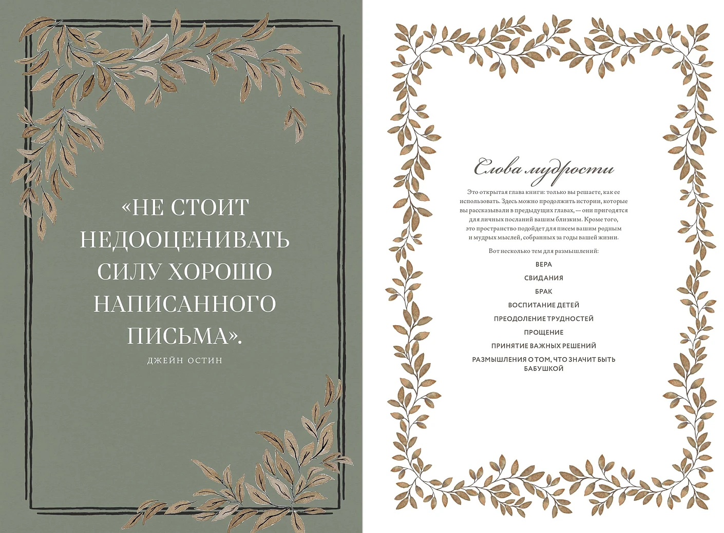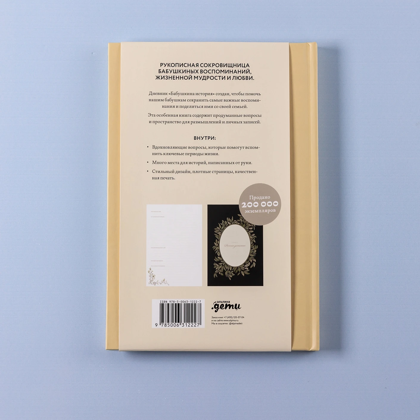 Дневник «Бабушкина история» создан, чтобы помочь нашим бабушкам сохранить самые важные воспоминания и поделиться ими со своей семьей. Эта памятная книга содержит продуманные вопросы и создает пространство для размышлений и личных записей. Настоящая рукописная сокровищница для воспоминаний, жизненной мудрости и любви.