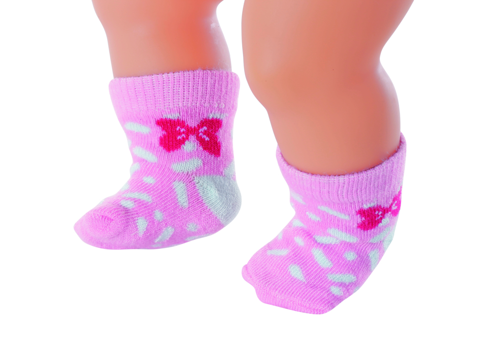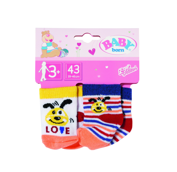 Добро пожаловать в кукольный мир BABY Born. Это творческая ролевая игра в красочных игровых мирах. Играть с BABYborn никогда не надоест! Сегодня она - ребенок, о котором нужно заботиться, на следующий день она - друг и компаньон для невероятных приключений, как реальных, так и воображаемых. Неужели монстр снова спрятал все носки? Неважно, вот несколько новых пар. Пакет номер один в розово-синем цвете - любимый кролик Бин. Ее розовый бант также идеально сочетается с нежными цветами. Собака Белло предпочитает более яркие цвета, подобные тем, что во второй паре. Качественная одежда для брендовой куклы BABYborn. Для расширенного, разнообразного и продолжительного удовольствия от игры. Очень легко надевать и снимать. Носки Babyborn (2 шт.), 43 см.