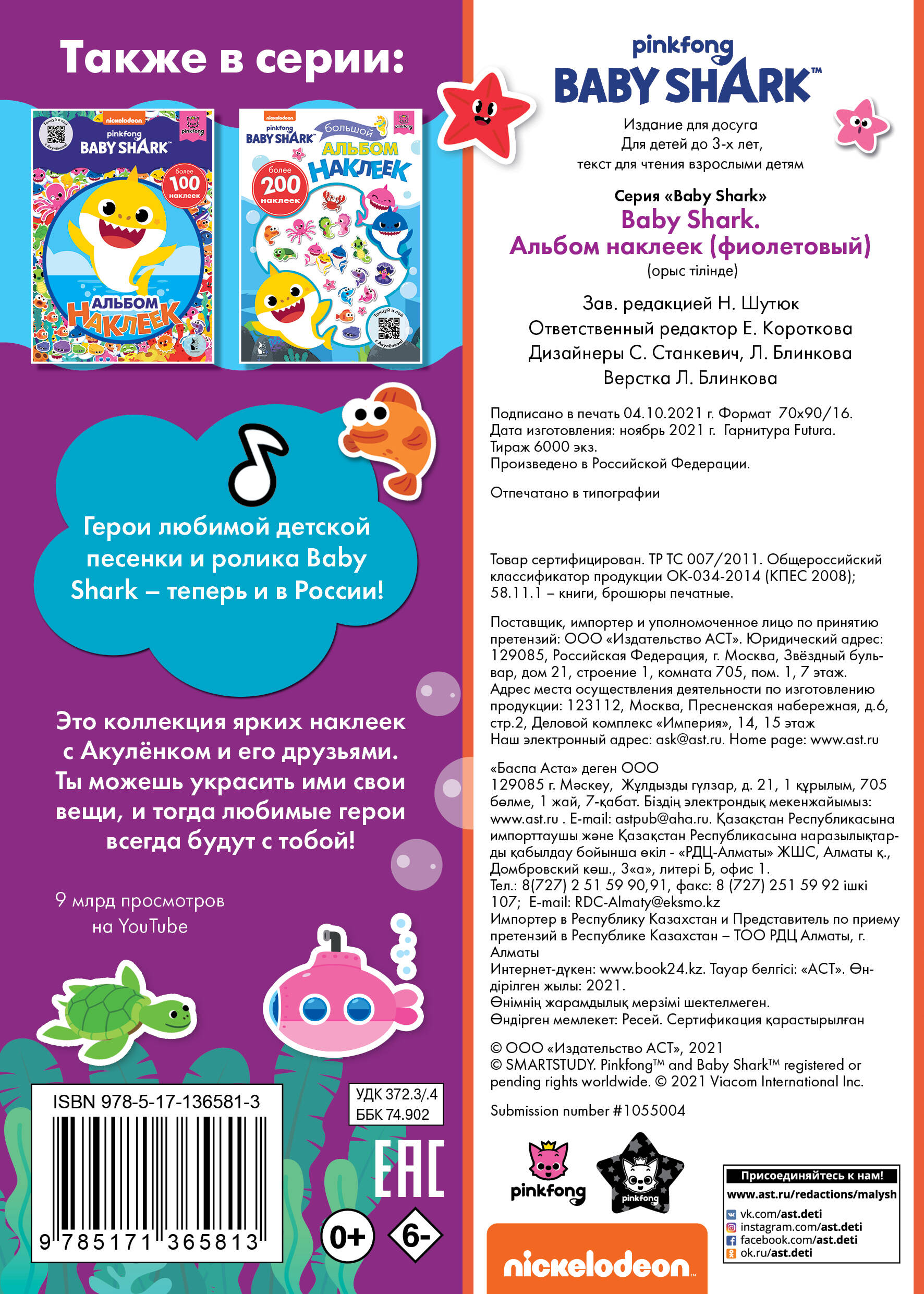 Аннотация: Baby Shark. Альбом наклеек (фиолетовый)