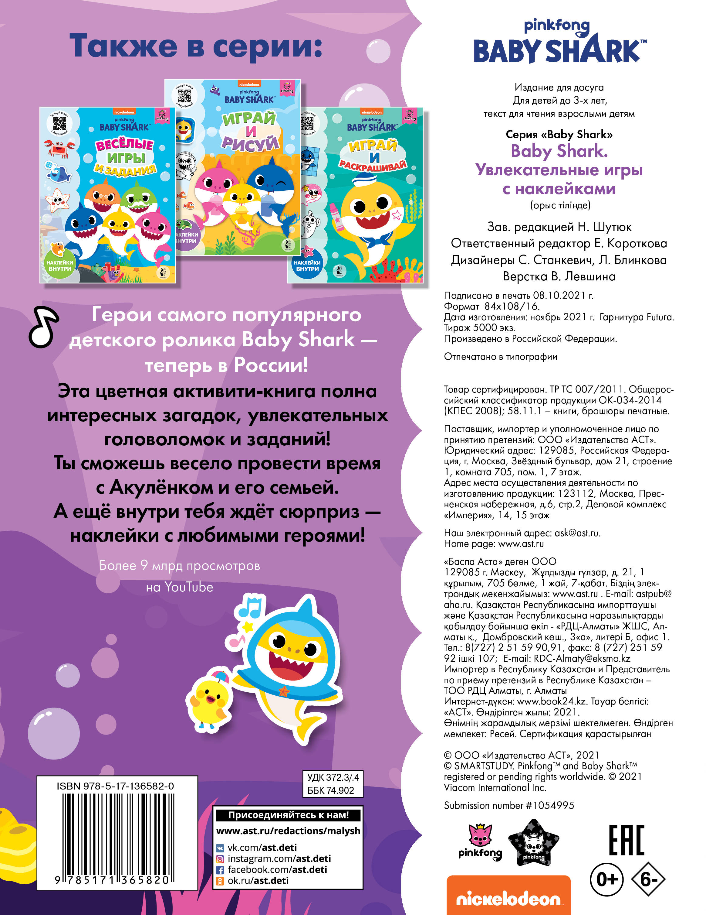 Акулёнок приготовил для тебя множество весёлых игр и заданий: - игры с наклейками - рисование по точкам - поиск отличий и соответствий - раскраски по номерам и многое другое! А с яркими наклейками решение загадок станет ещё интереснее! Играй, рисуй, узнавай вместе с Акулёнком и его друзьями!| Издательство | ИЗДАТЕЛЬСТВО "АСТ" |