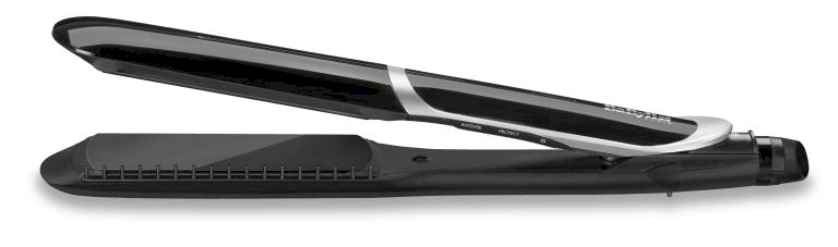 Особо длинные пластины с турмалиново-керамическим покрытием и ионизацией против пушения волос обеспечивают лёгкое скольжение и ультра-гладкий, блестящий результат. Съёмные расчёски для контроля укладки.