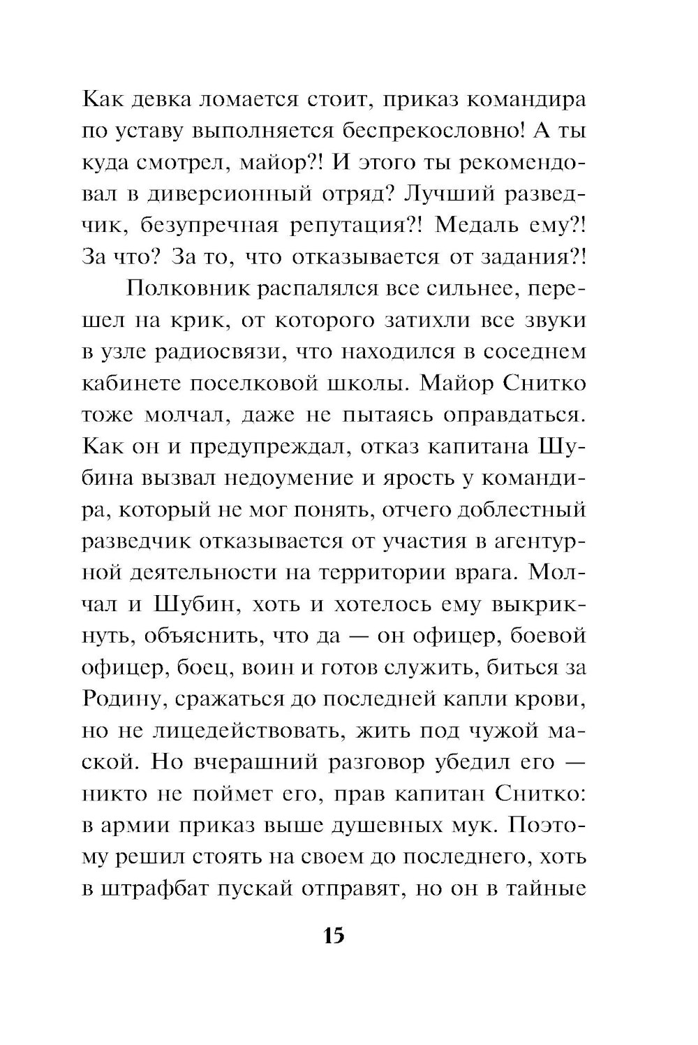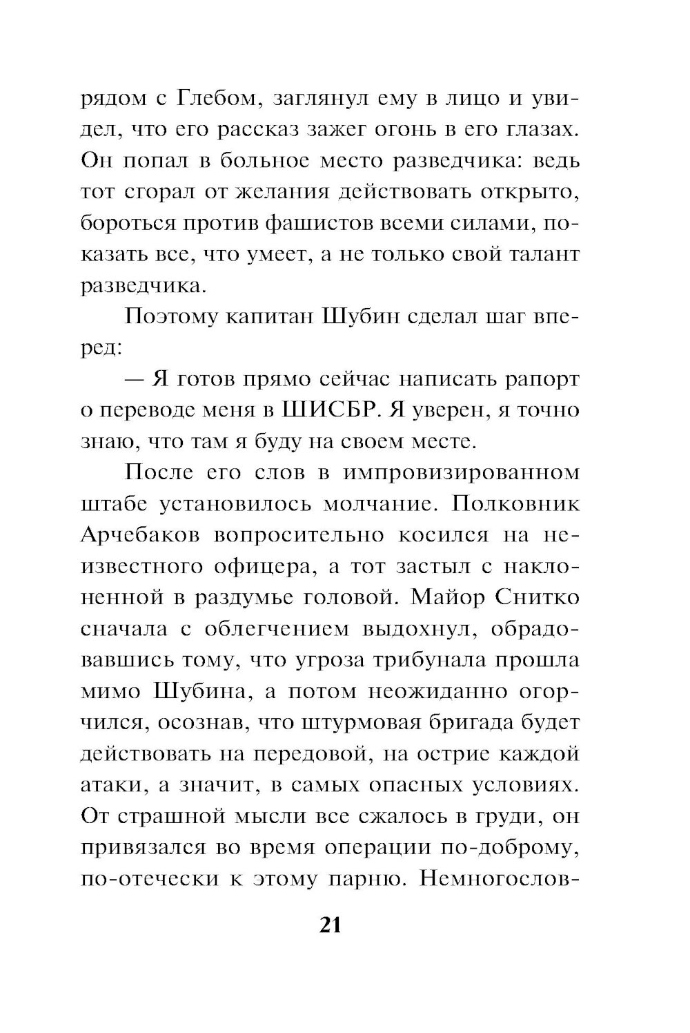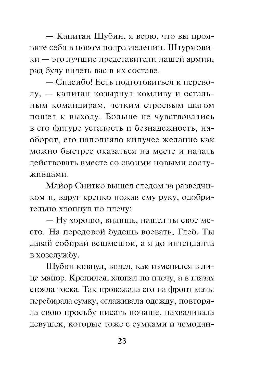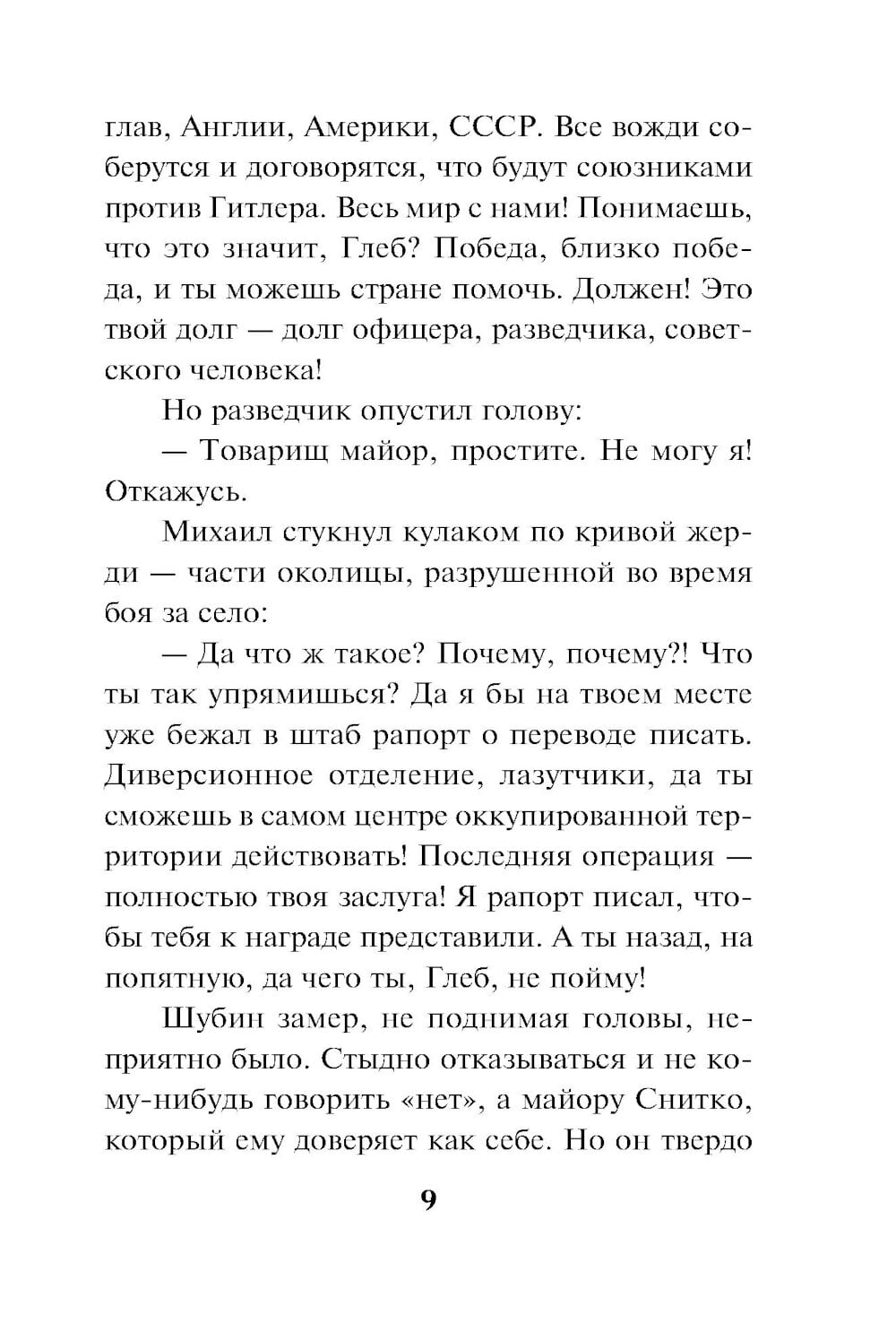Боевые романы о ежедневном подвиге советских фронтовых разведчиков. Поединок силы и духа, когда до переднего края врага всего несколько шагов. Подробности жестоких боев, о которых не рассказывают даже ветераны - участники тех событий. Советское командование разрабатывает Крымскую наступательную операцию. Группе разведчиков капитана Глеба Шубина приказано разведать обстановку в районе залива Сиваш. Бойцы проникают на территорию противника и собирают данные о важном узле немецкой обороны. Подоспевшие подразделения довершают работу разведчиков. Гитлеровские укрепления уничтожены. По дороге на исходный рубеж отряд капитана Шубина останавливается на ночлег в полуразрушенной деревне. Совершившие за один день невозможное уставшие красноармейцы еще не знают, что предстоящая ночь готовит им страшный сюрприз...| Издательство | Эксмо |